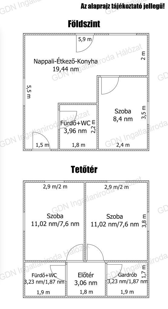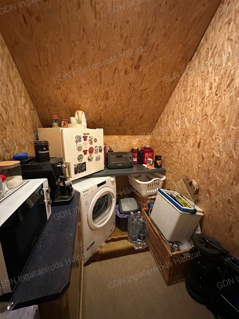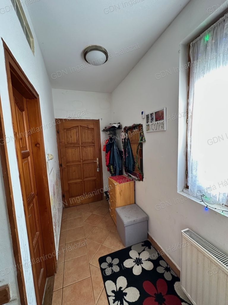 A lakás kétszintes, a két szint között a ház közepén lévő lépcsőházat tudjuk használni, ami közös a ház másik felében lévő lakással.