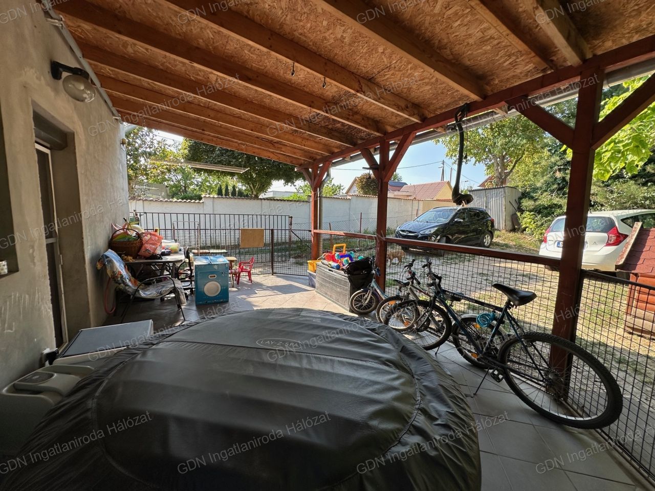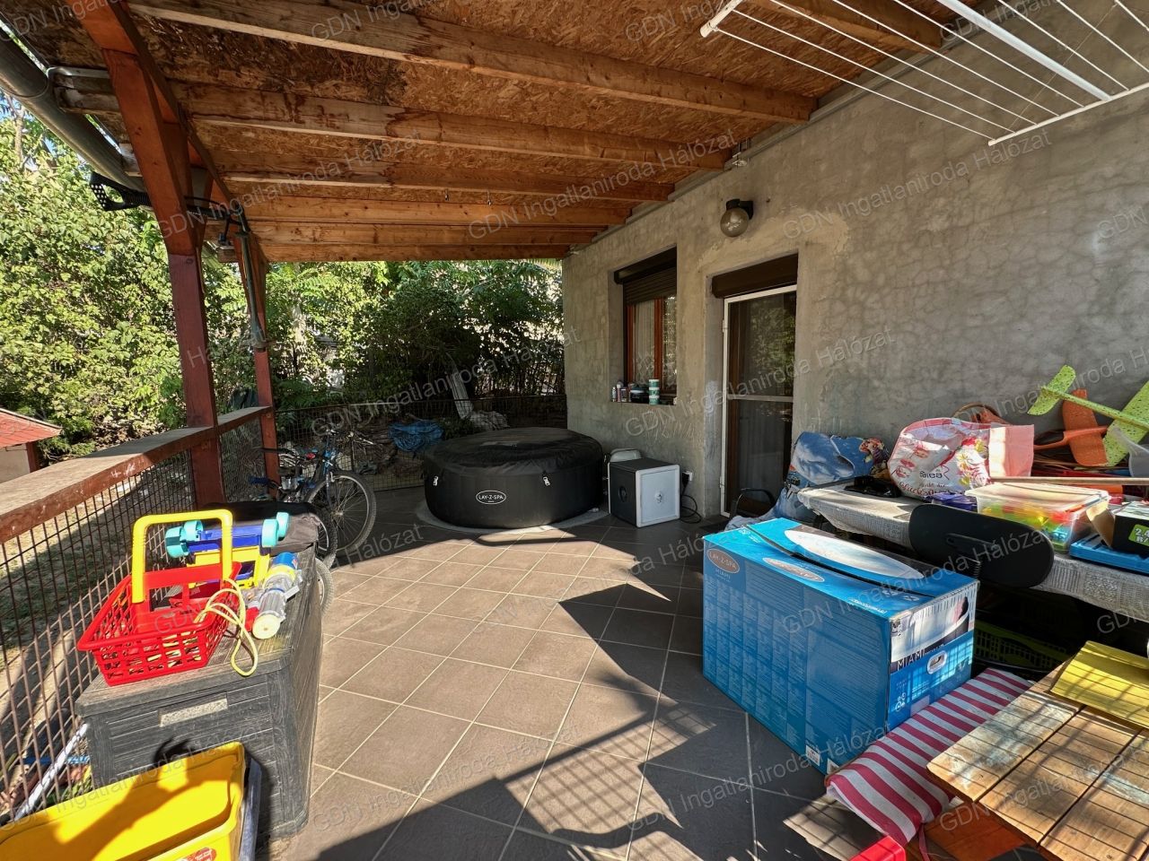 A lakás kertkapcsolatos, 20 m2-es fedett terasszal, autóbeállási lehetőséggel.