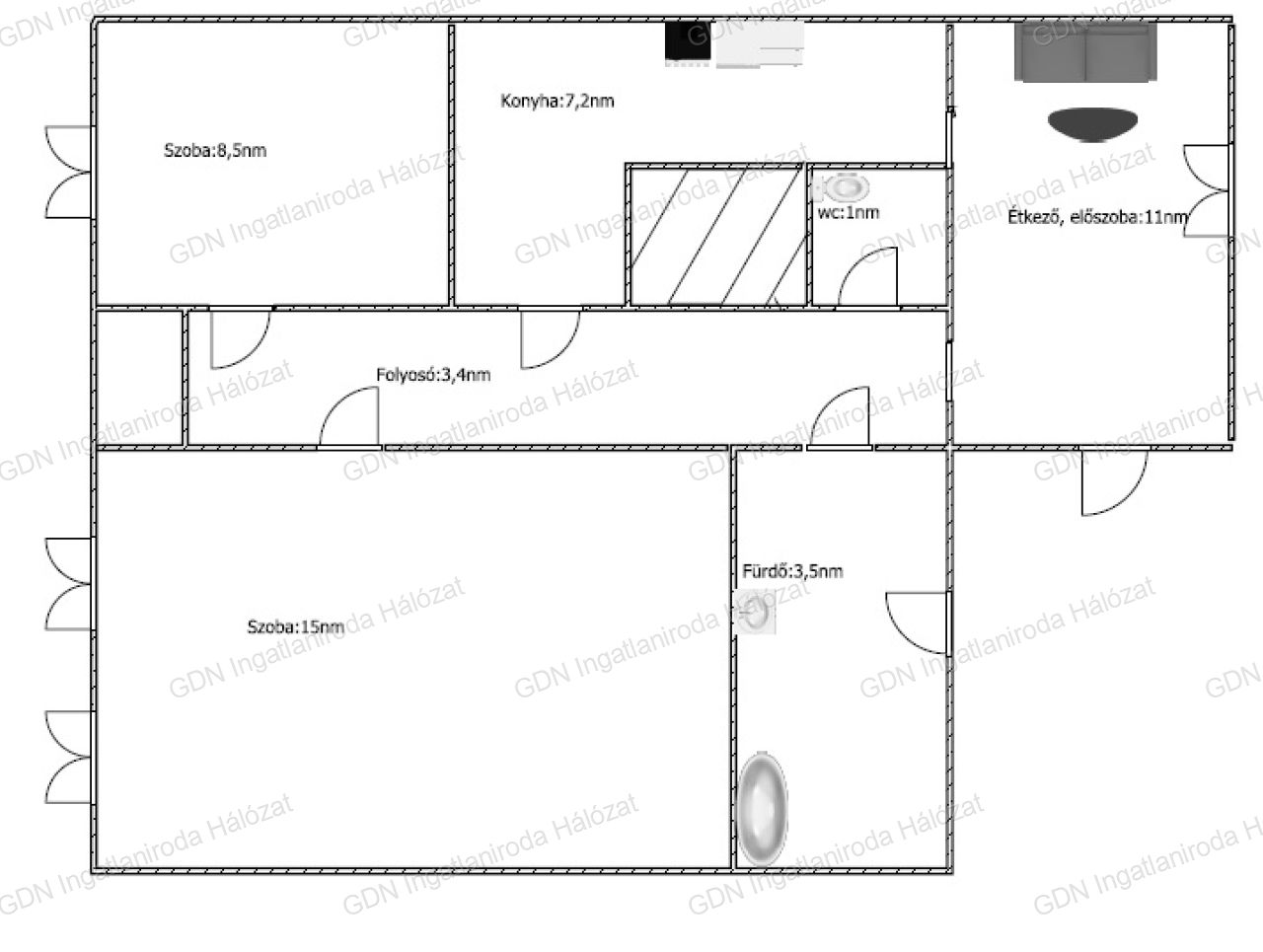 Szobák száma | 2 szoba + 2 félszoba |