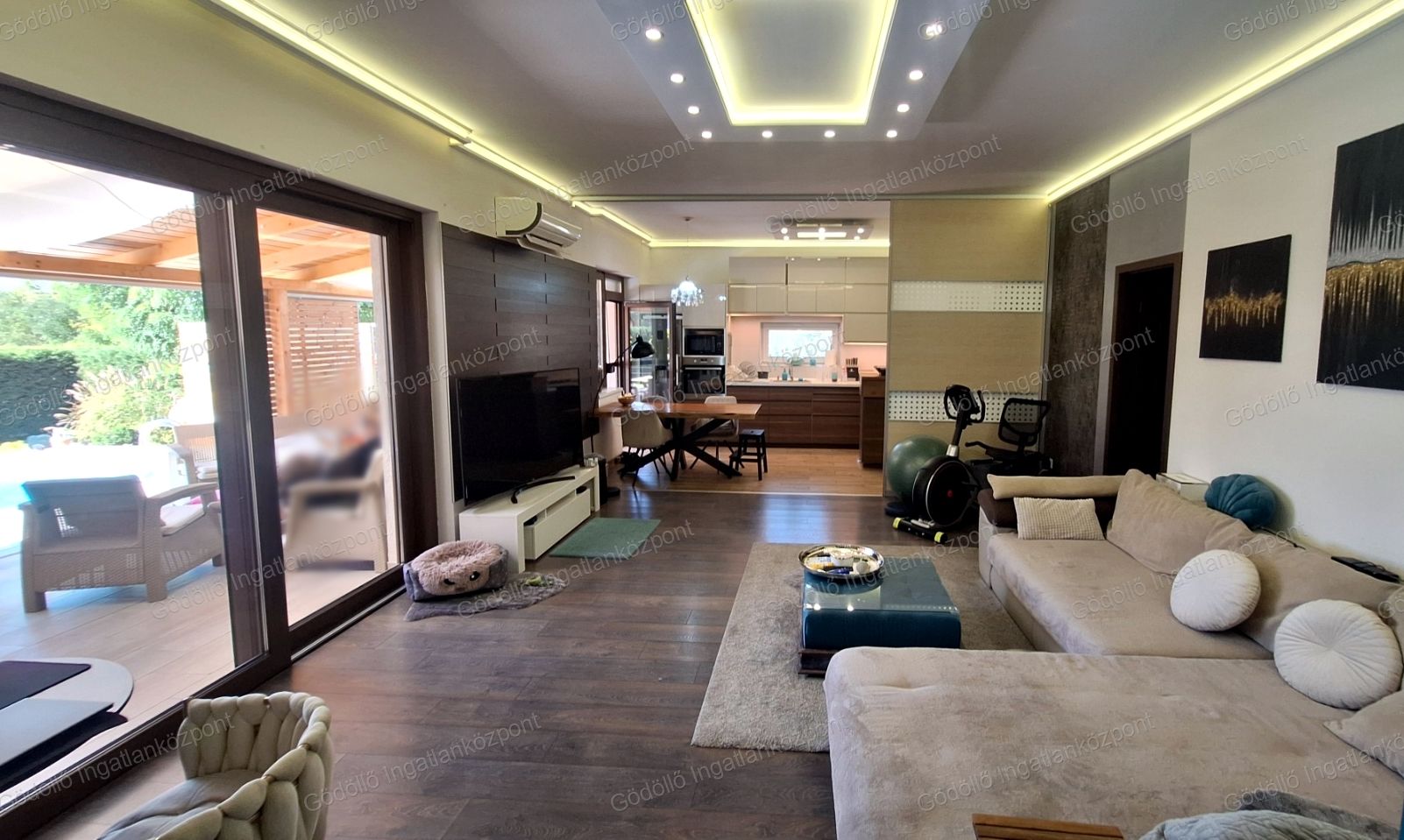 Fót természetközeli, panorámás részén, kizárólag prémium minőségű anyagok felhasználásával épült, újszerű állapotú, rezsimentes családi ház dupla garázzsal, medencével eladó!