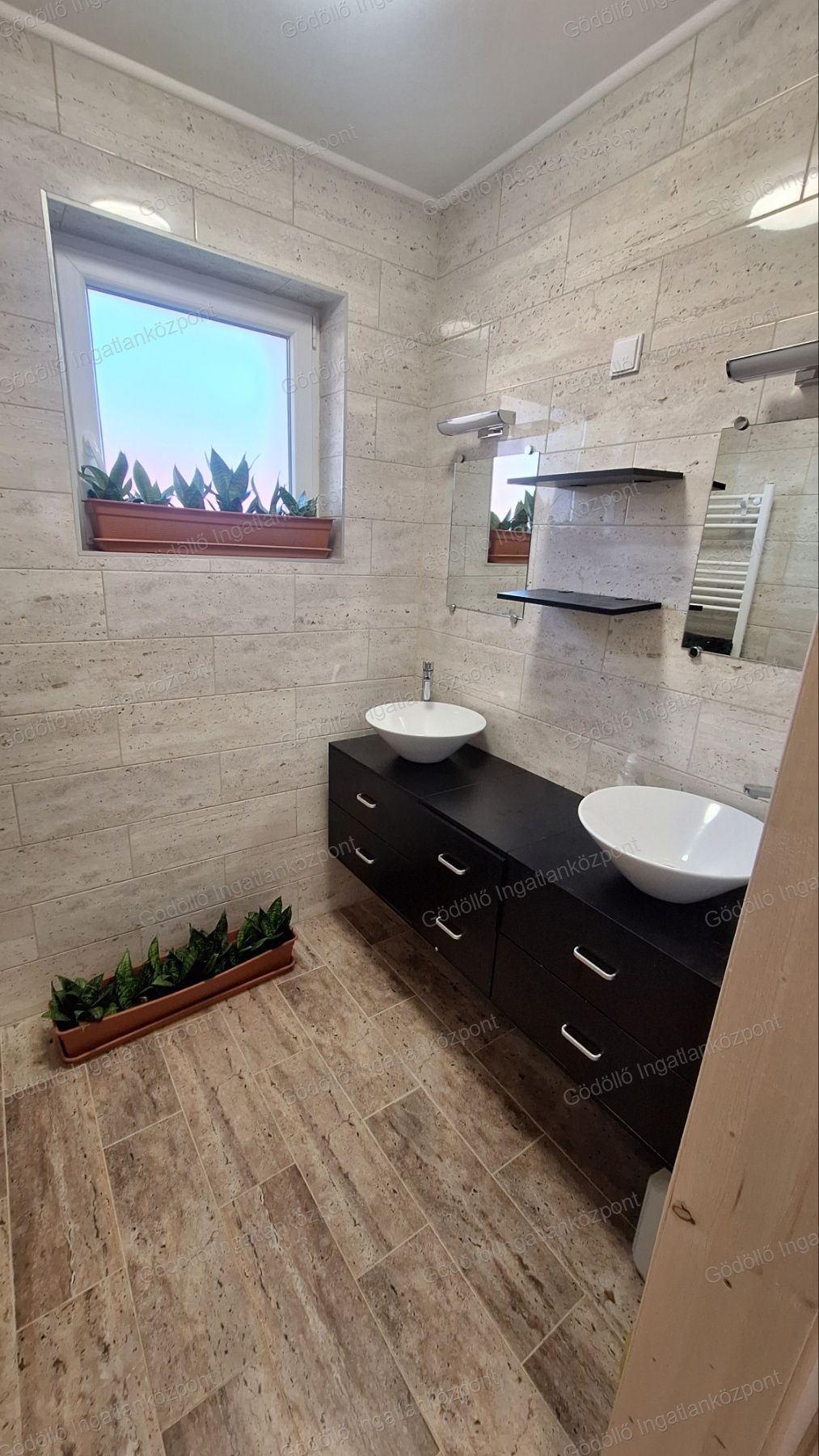 - épített zuhanyzós fürdőszoba kialakítása duplamosdóval,
