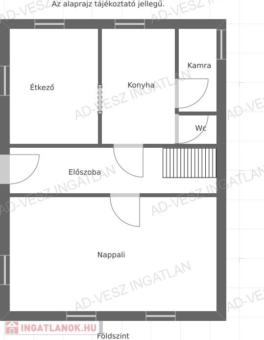 A földszinten kialakításra került egy hatalmas, tágas, világos nappali, előszoba, konyha, étkező, wc.