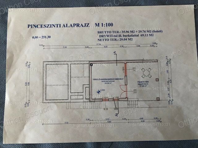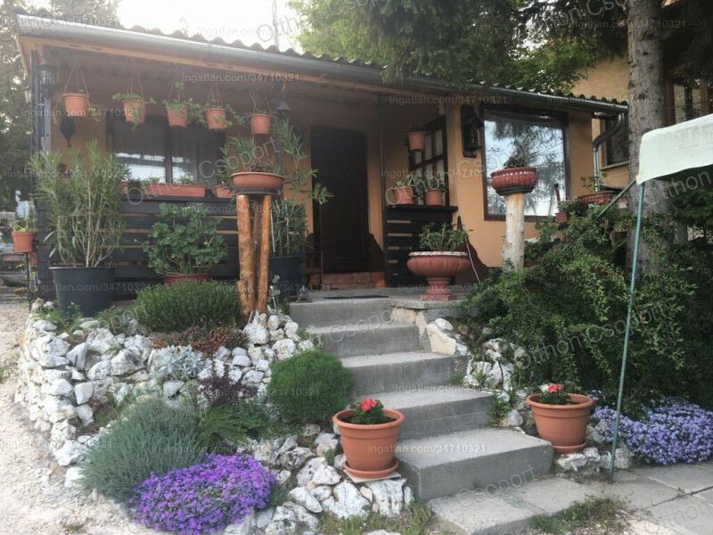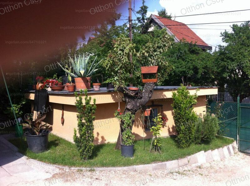 A telek alsó részén található 32 nm2 téliesített faház és 18 nm2 utcára nyíló garázs.