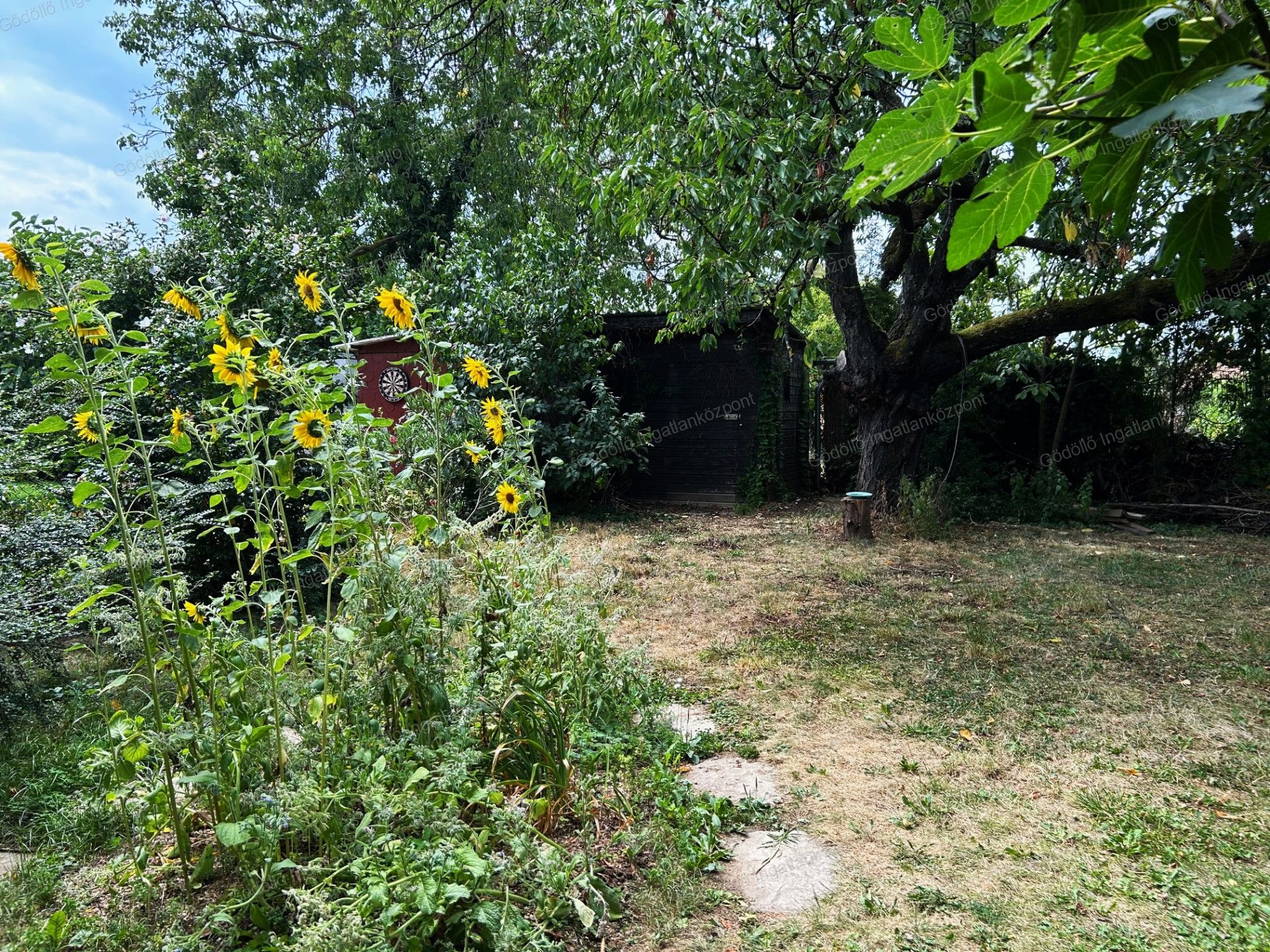A telek 517nm-es, többfajta fával, örökzöldekkel, virágokkal (cseresznyefa, selyemakác, fügebokor, almafa stb) díszített. Déli oldalról a növények árnyékolják a házat, így kánikulában klíma nélkül sem megy 25 fok fölé a benti hőmérséklet. Szerszámok, tűzifa tárolásához beton alapú, 8nm-es tároló áll rendelkezésre.