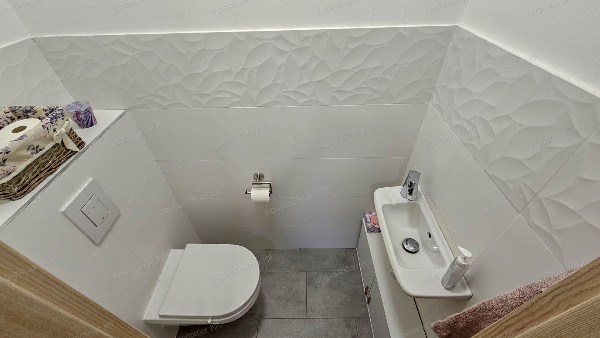 - Fürdőszoba épített zuhanykabinnal, sarokkáddal, WC-vel