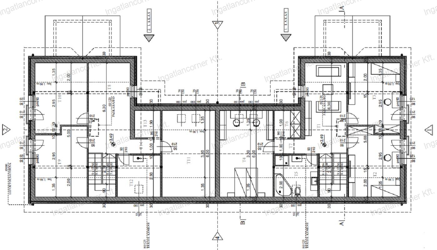 2-es lakás: 493 m2 telek, nettó lakótér 125 m2, nappali + 4 hálószoba, gardrób, terasz (+10 m2), garázs (+21 m2)