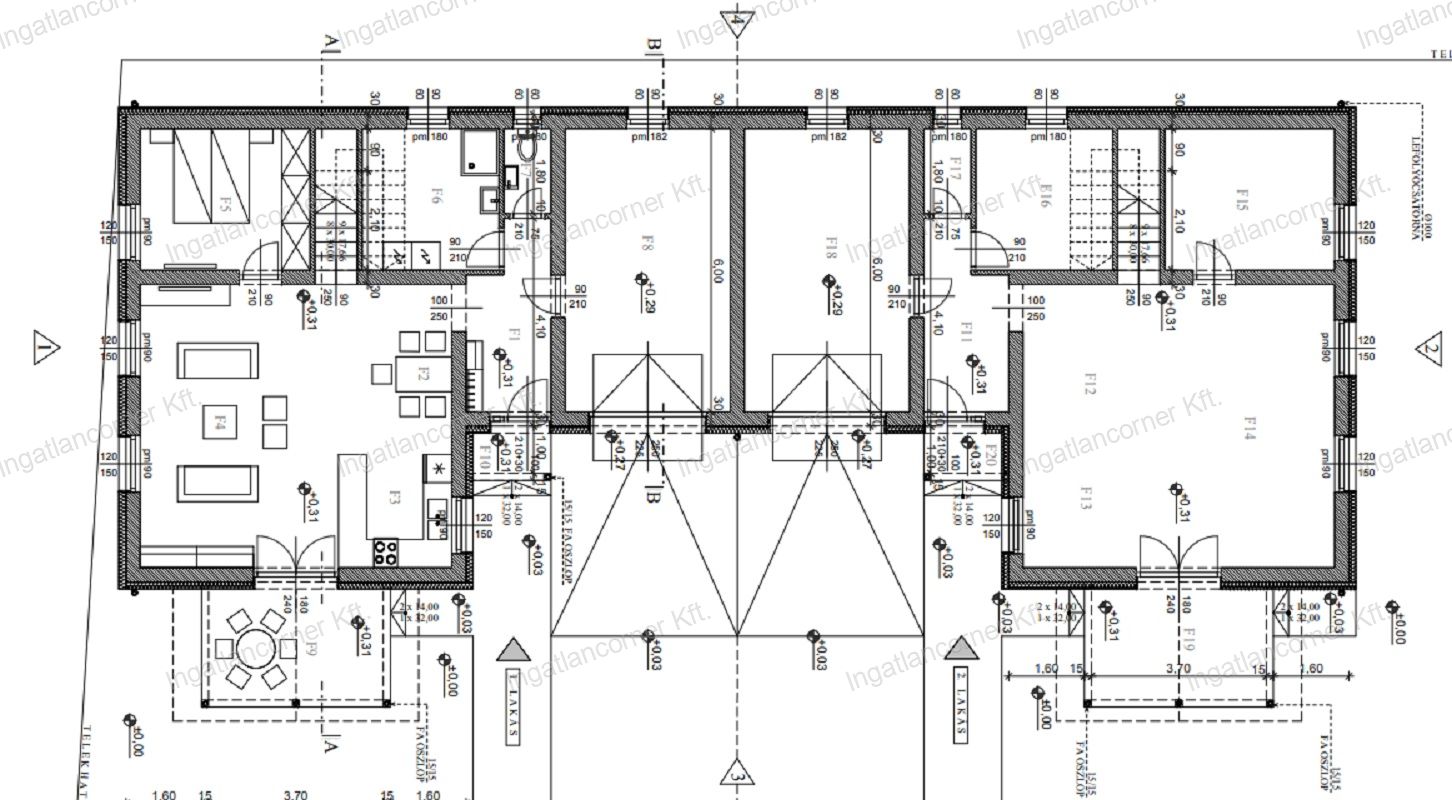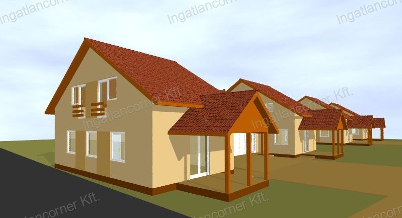 Mindegyik ingatlan 124,5 m2-es (+ fedett terasz 10 m2), nappali + 4 hálós, 2db fürdőszobás, gardrób helyiség, garázs (+21 m2)