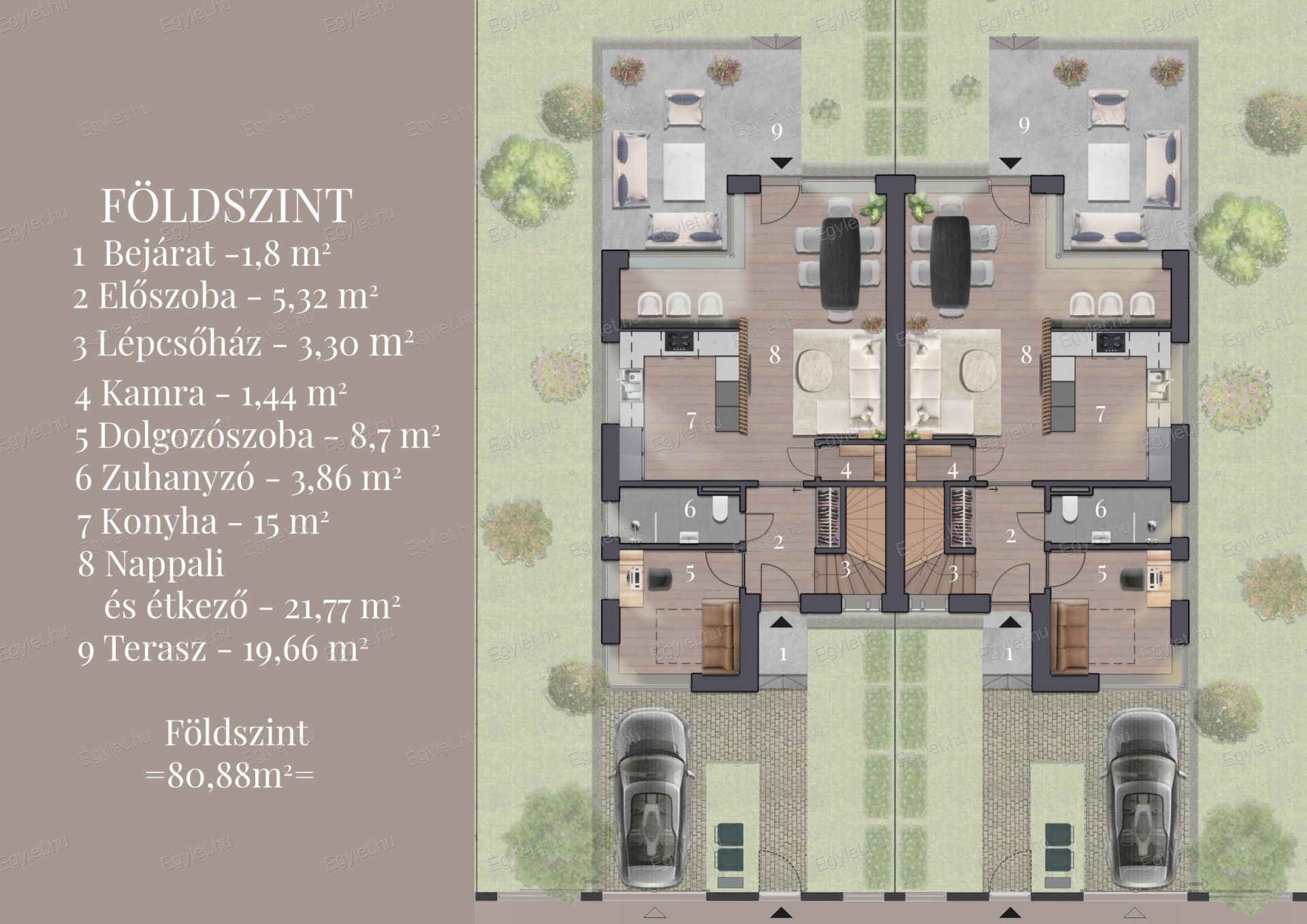 Megvételre kínálunk Tárnok egyik legszebb részén, egy HÓSZIVATTYÚS, KLÍMÁS, új építésű, teraszos, erkélyes, NETTÓ 130 nm-es, 5 szobás, dupla fürdős ikerházat.