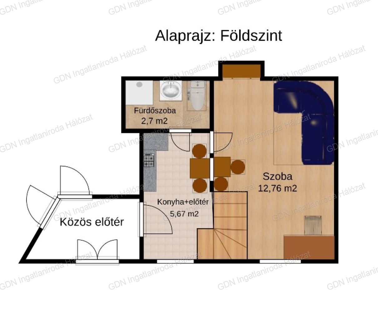 • Kétszintes kialakítás – nappali, a felső szinten hálórész és külön vendégsarok