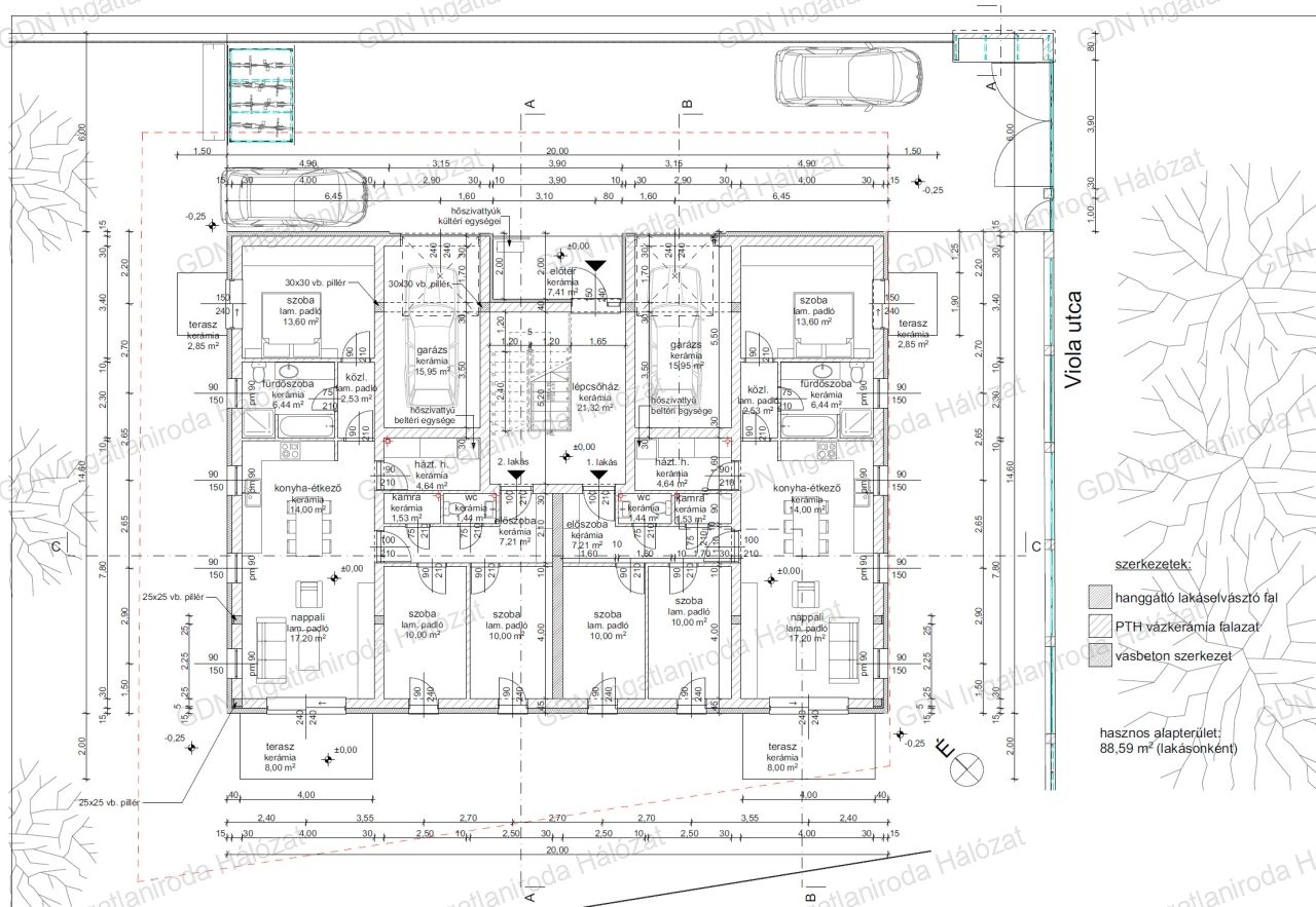 -Lakás alapterület:88,6 m² + garázs 16 m² + teraszok 8 m² és 2,85 m²