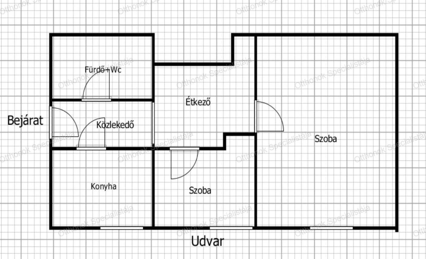 Egy földszinti, 45 m² alapterületű, téglaépítésű lakás várja új tulajdonosát. Az ingatlan elosztása praktikus: