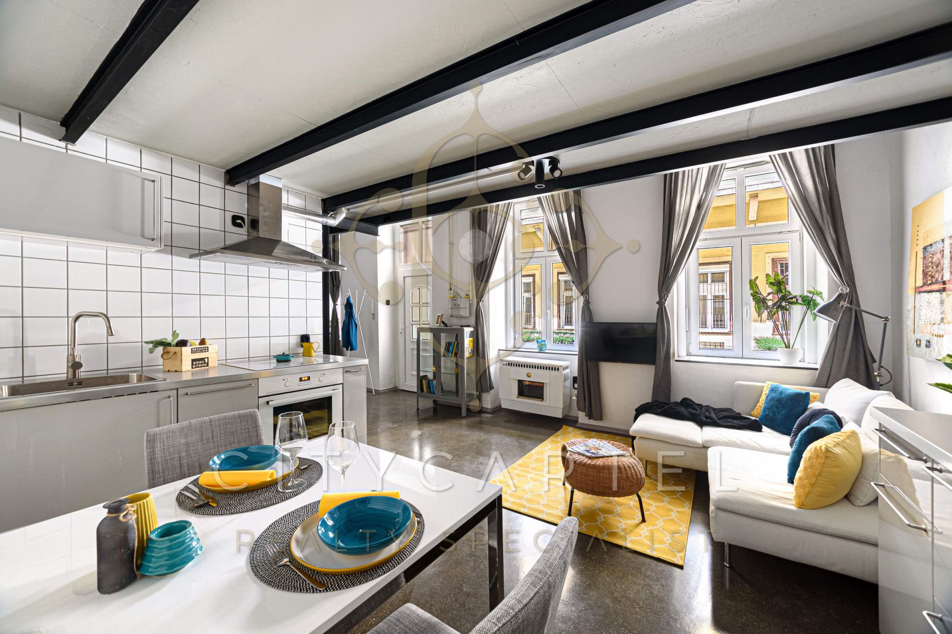 A Corvin sétány szomszédságában, mégis csendes, zöld udvarra néző környezetben várja új tulajdonosát ez a különleges atmoszférájú, teljeskörűen felújított, design loft stílusú 42 nm-es, 2 szobás lakás.