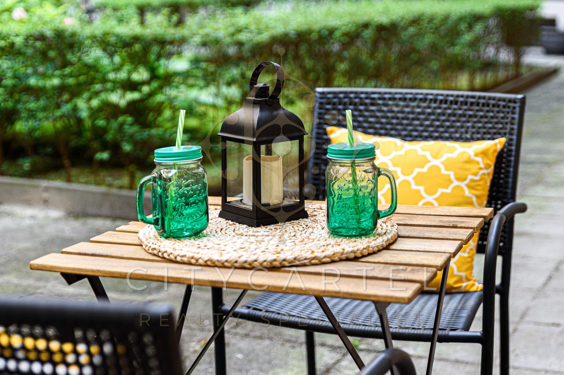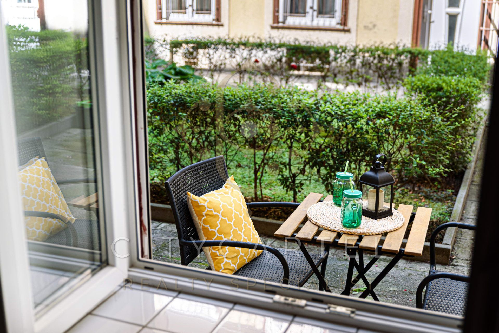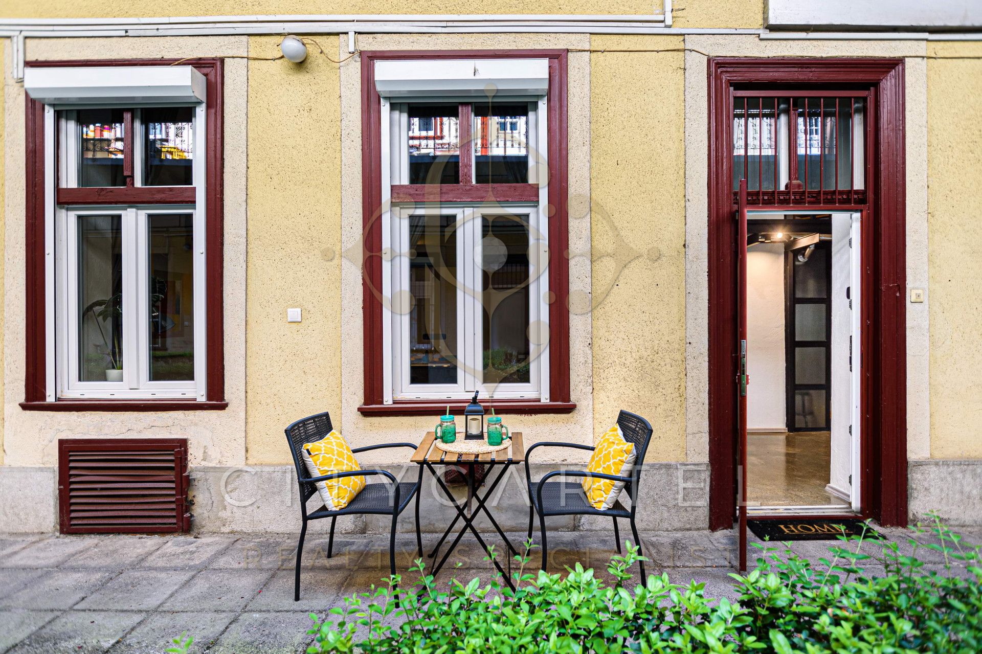 Rendezett, zöld belső udvar, valódi kis oázis a város forgatagában.