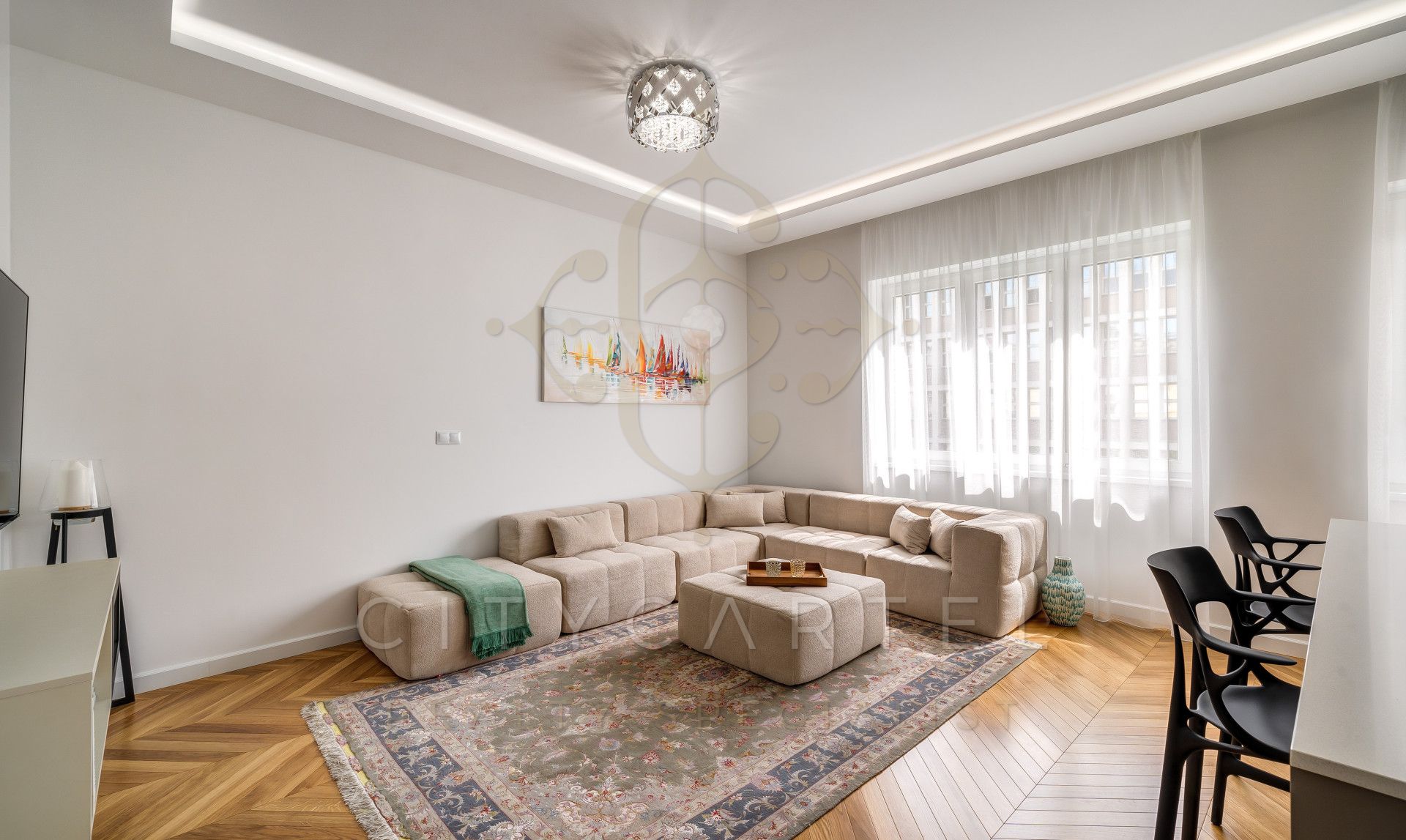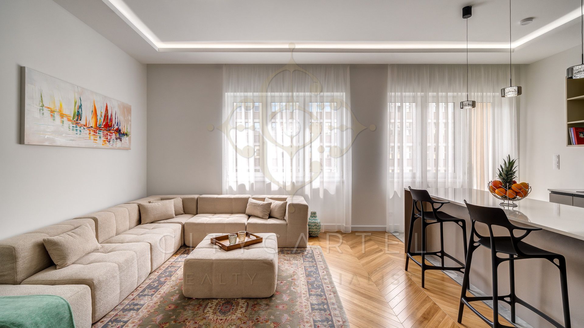 eladásra egy 100 m²-es, 4,5 m² erkéllyel rendelkező, luxusminőségben felújított lakást, amely