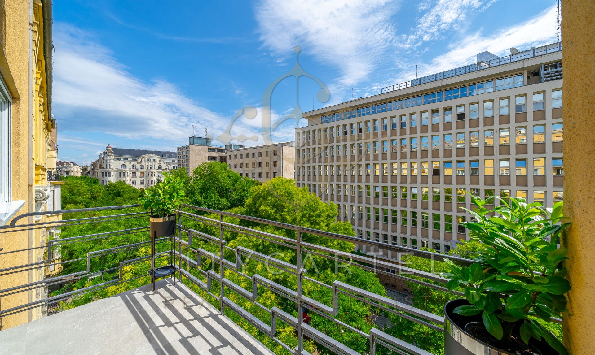 A 4,5 m²-es erkély a Falk Miksa utca hangulatos világára néz, tökéletes hely egy kávéval