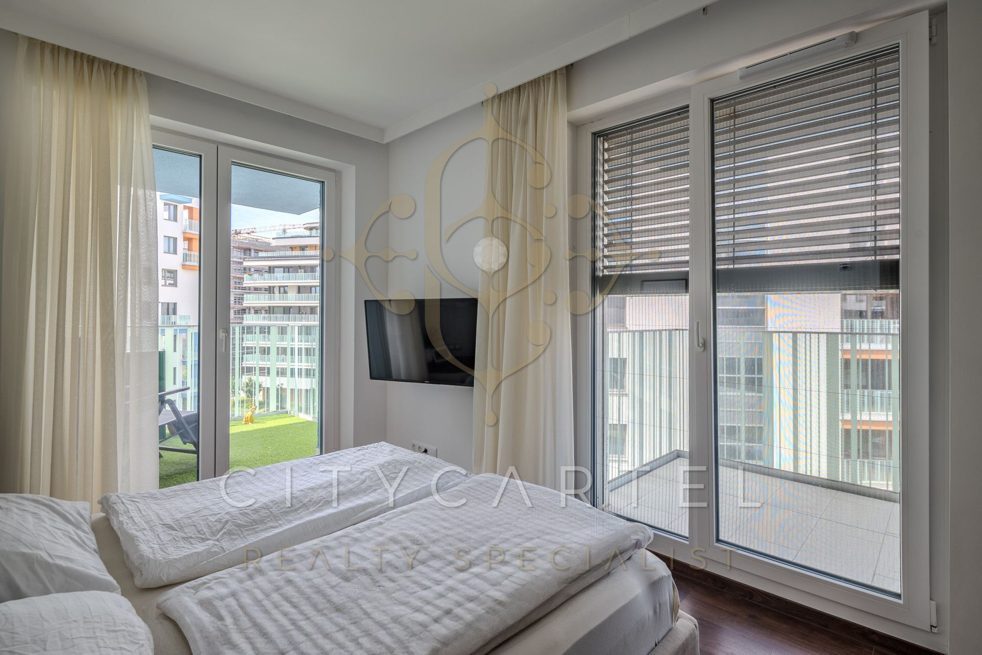 A Marina Part legújabb fejlesztésében, a Duna Terasz Grande-ban eladó egy 94 nm-es, három hálószobás, két fürdőszobás, 20 nm-es teraszos prémium kategóriás lakás.