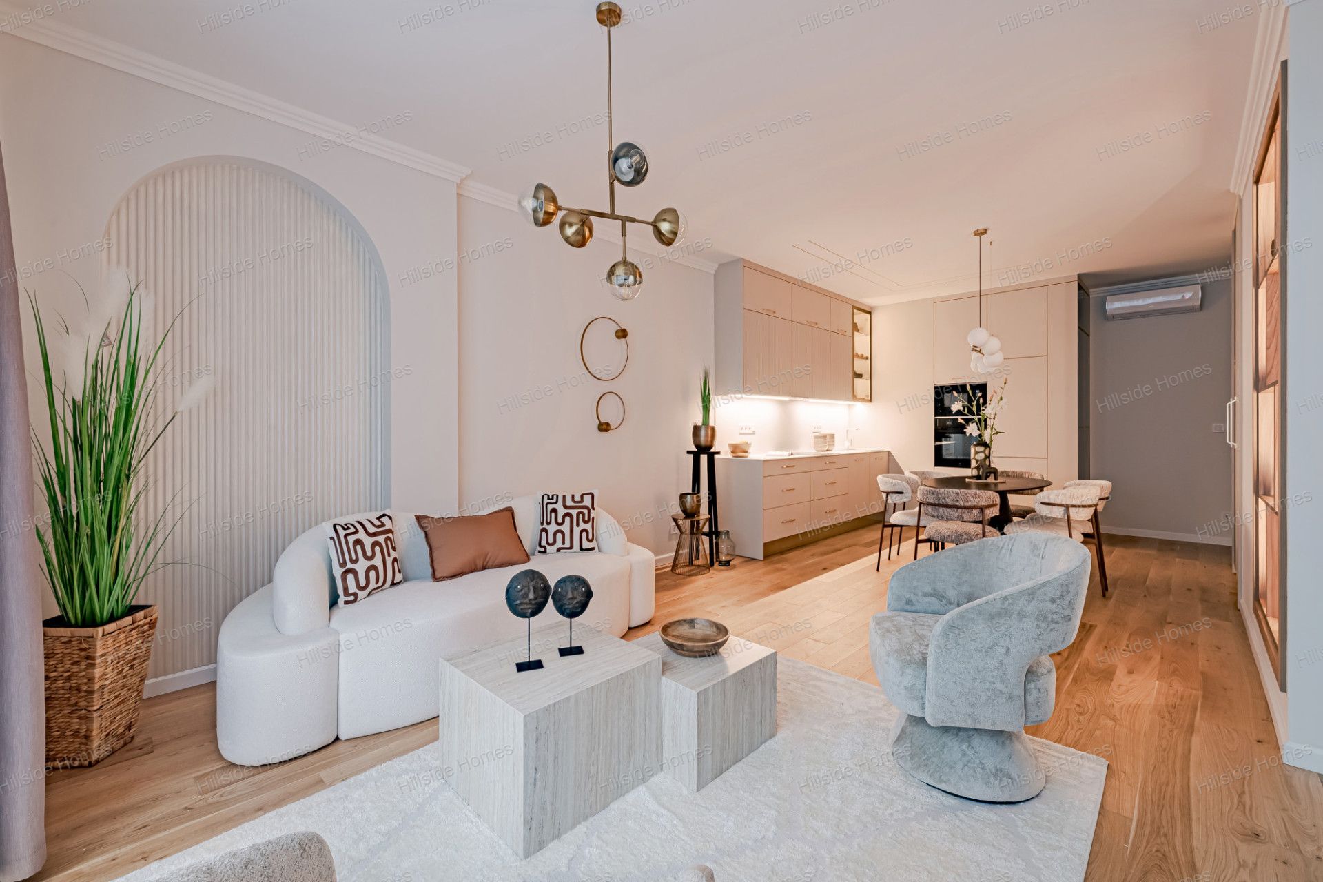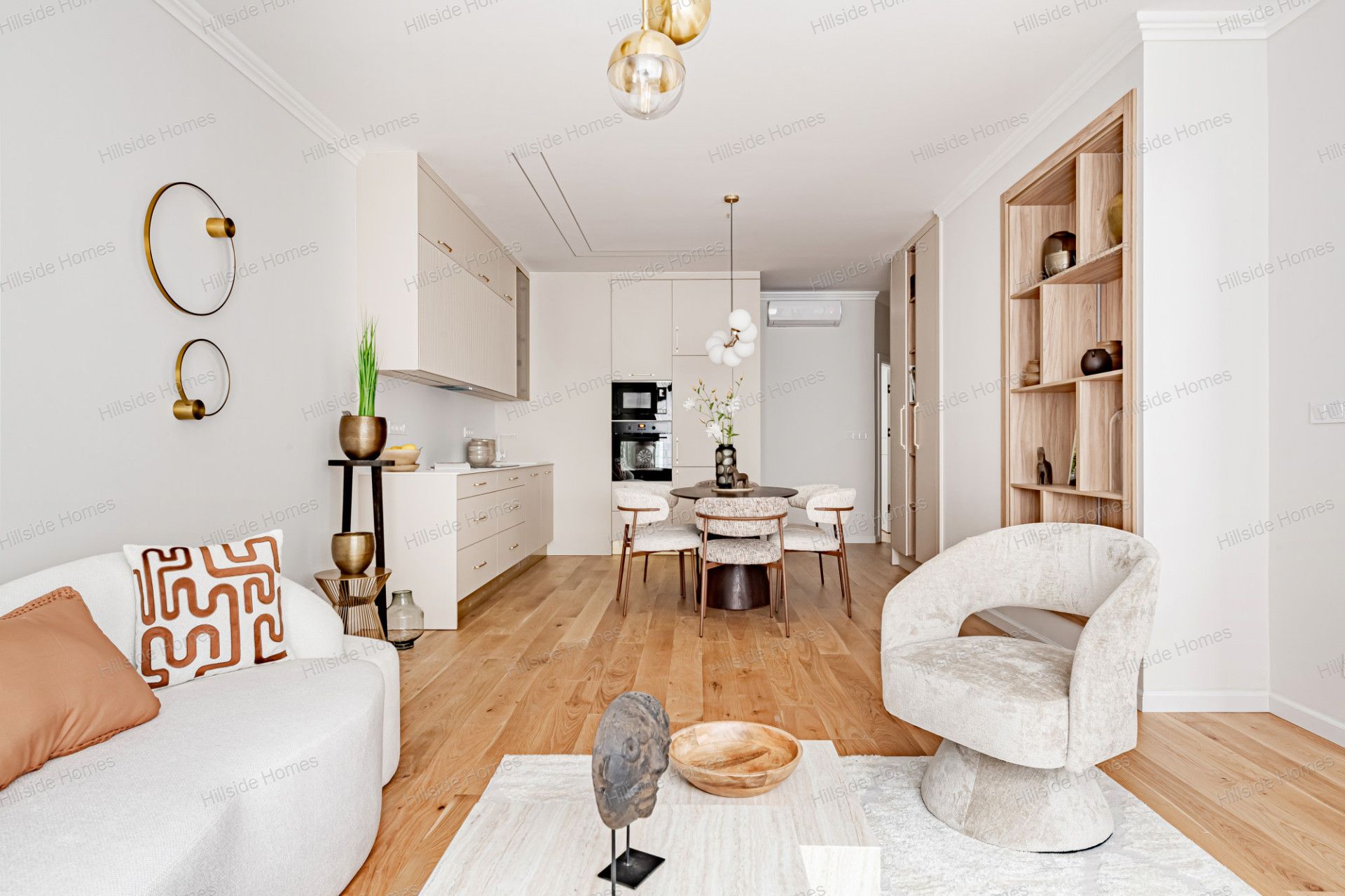 Az azonnal költözhető lakás légkondicionált, világos és csendes, alacsony fenntartási költségekkel. A vételár tartalmazza a beépített gépeket, az egyedi bútorokat és a társasházban található tárolót, így valódi értéket kínál. A lakberendezői munka és a minőségi anyagok garantálják az otthon meleg, ugyanakkor exkluzív hangulatát.