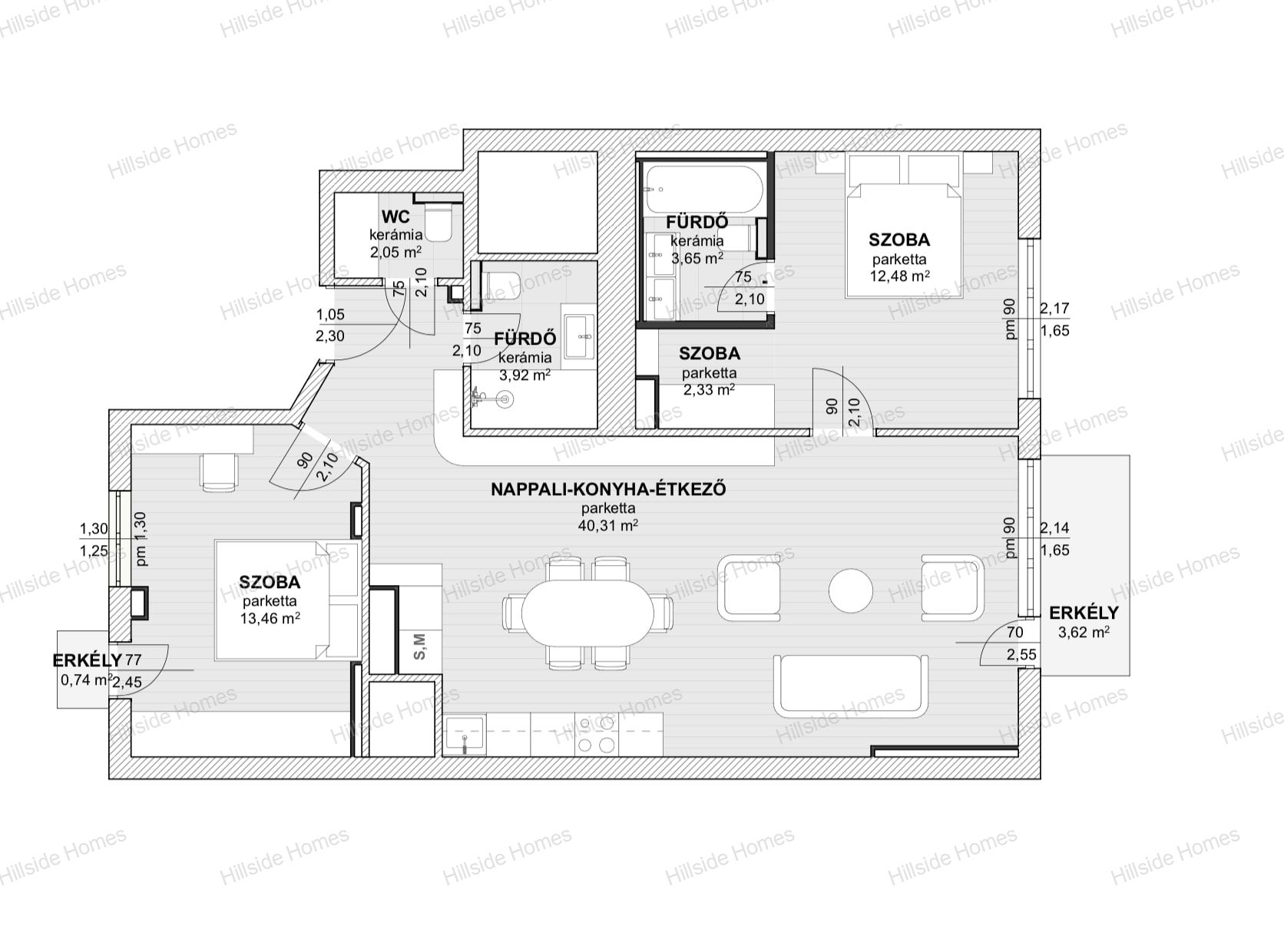 A 78 nm-es lakás teljes körű felújításon esett át, beleértve a víz- és villanyhálózat, valamint a fűtésrendszer korszerűsítését. Háromrétegű, hang- és hőszigetelt nyílászárók, felújított bejárati és új beltéri ajtók, valamint egyedi tervezésű bútorok biztosítják a prémium minőséget. Az elosztás ideális: tágas előszoba tárolószekrényekkel, egy privát erkéllyel rendelkező hálószoba, világos konyha-étkező-nappali tér, valamint egy gardróbos fő hálószoba kádas fürdőszobával.