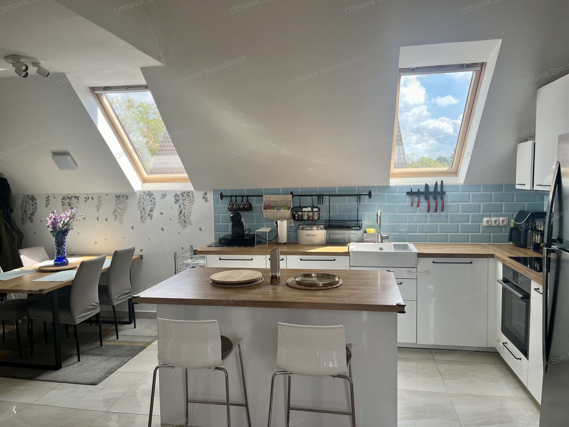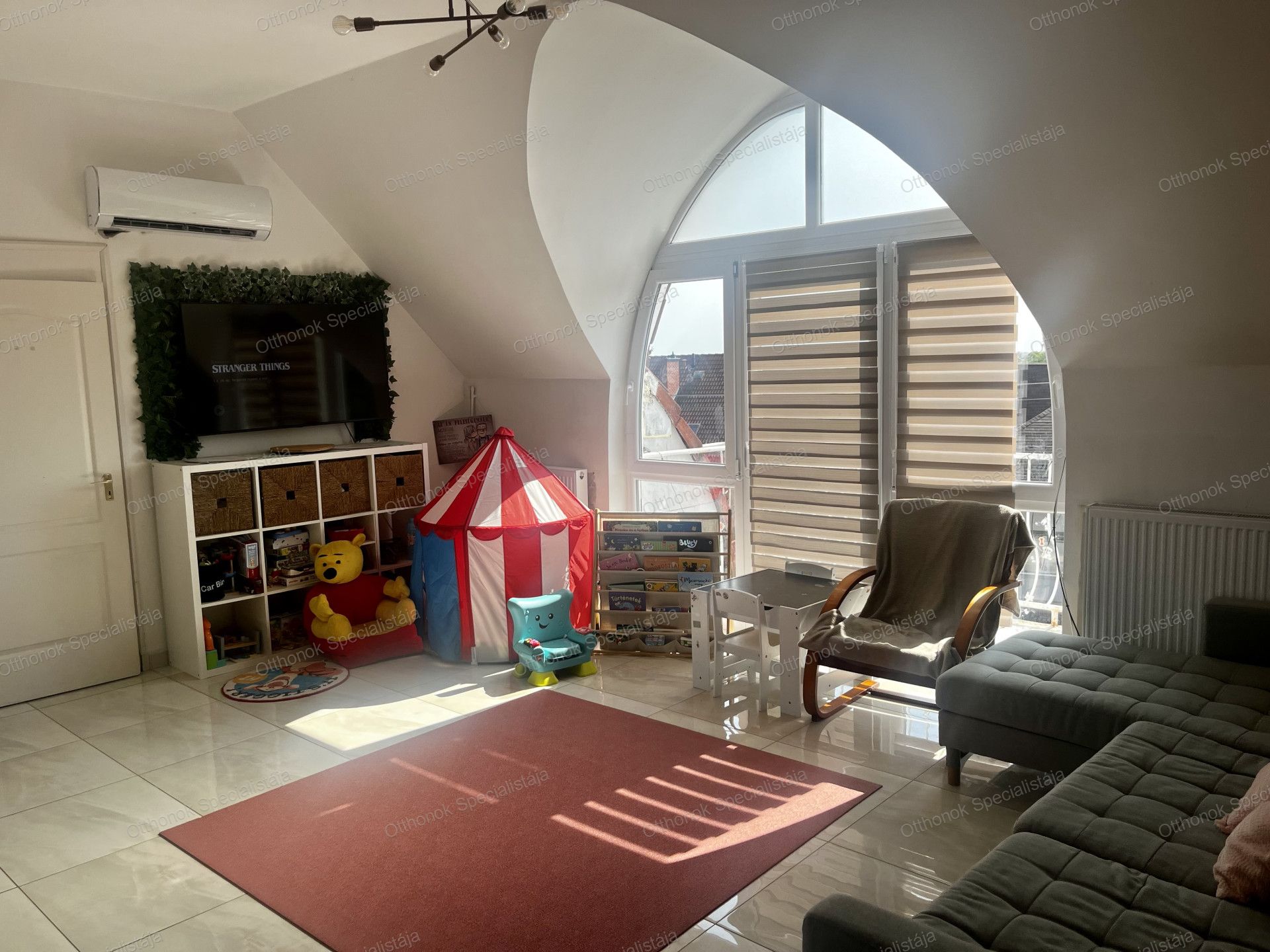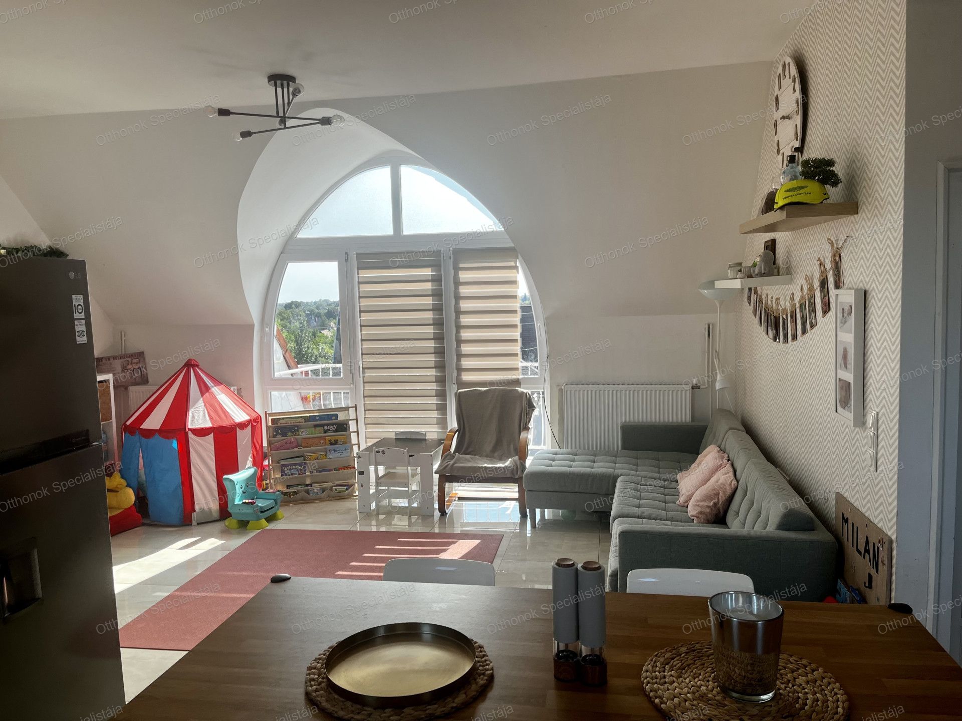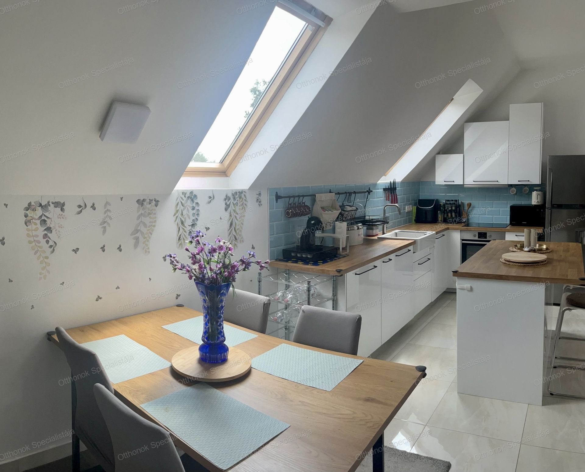 Eladó egy 83 m²-es, 1+2 félszobás, tetőtéri lakás, saját kertrésszel, Budapest XVIII. kerületének csendes, kertvárosi részén, egy 3 lakásos társasházban.
