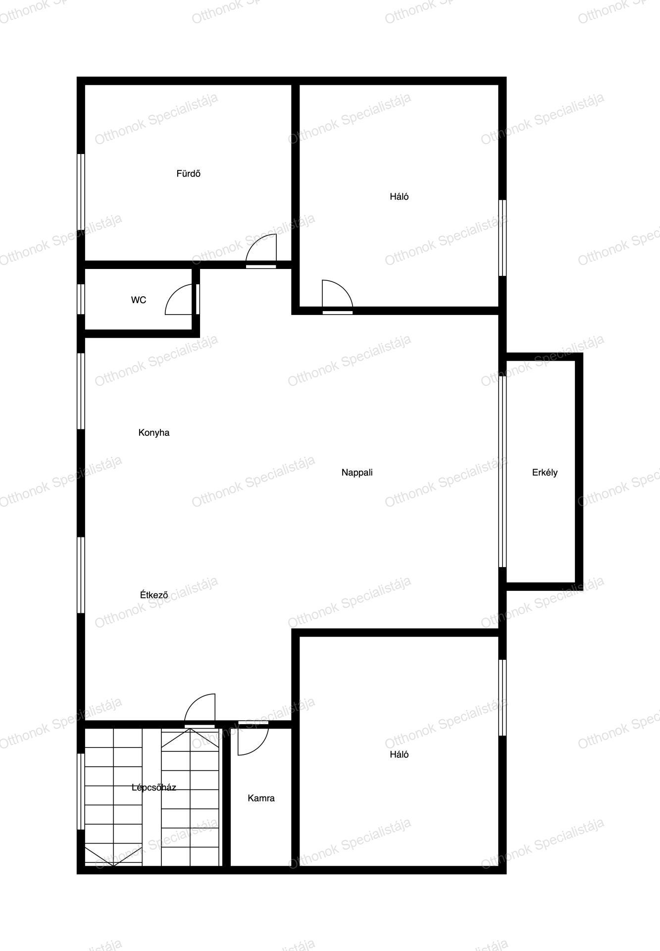 Elrendezés: amerikai konyhás nappali + 2 félszoba