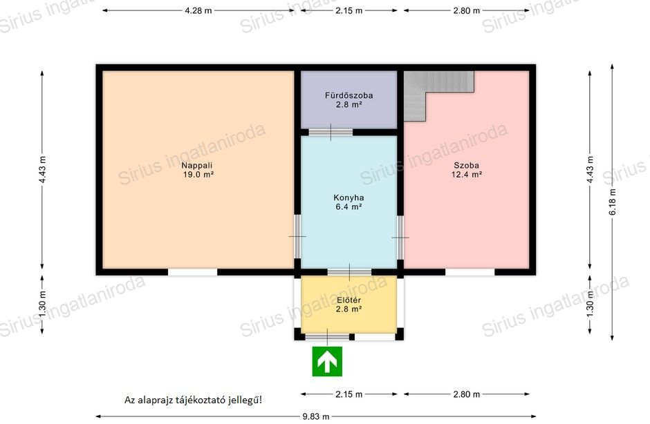 A telken 4 lakás található, melyből ez a hátsó ingatlan, tartozik hozzá egy szokásjog alapján használt (kb. 40 nm) nagyságú kertrész.