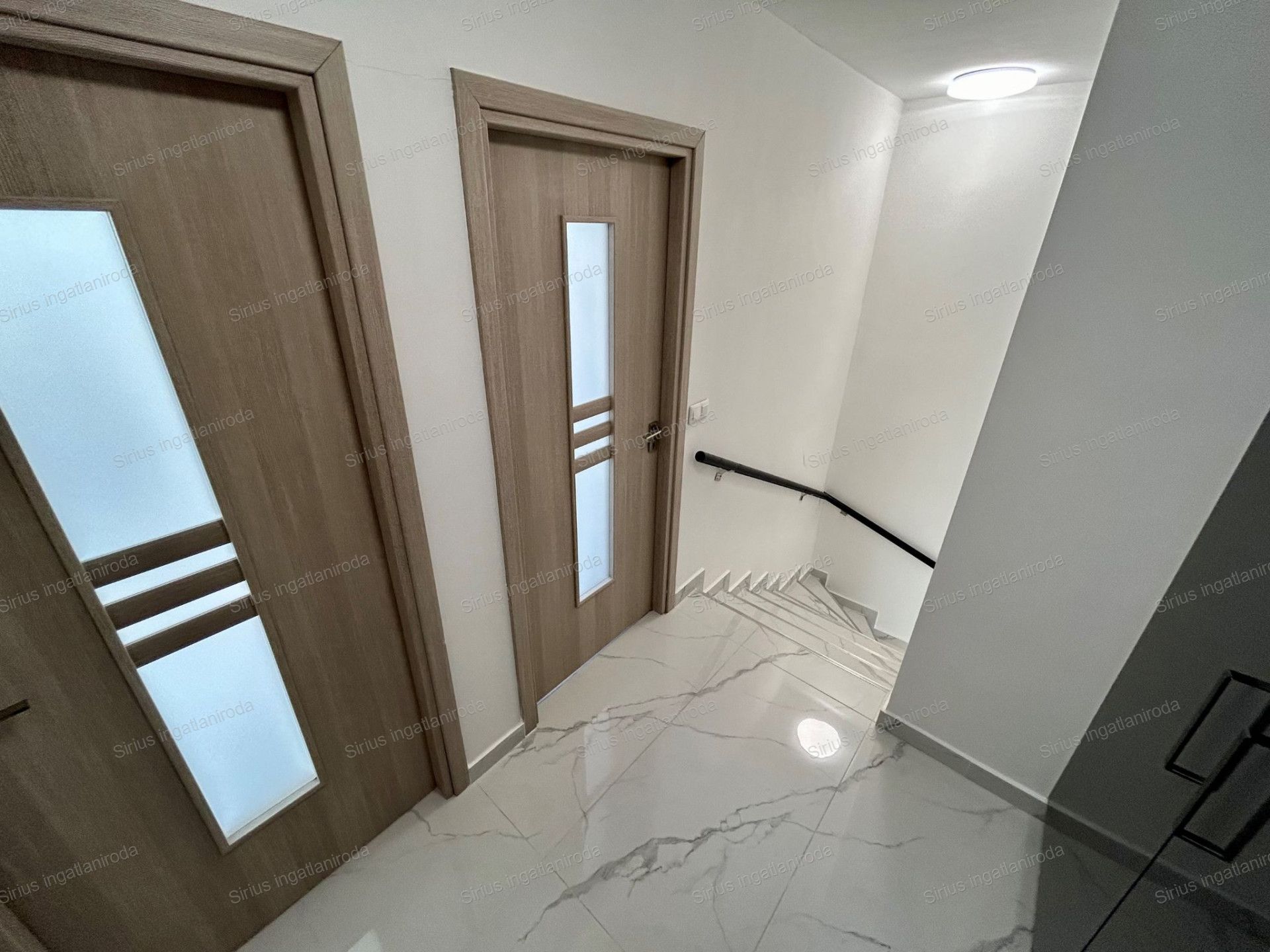 Az ingatlan utcafrontról külön kapun közelíthető meg, a lakás bejárata egy 24 nm nagyságú térkővel burkolt telekrészről van, ami igény szerint kocsibeállóként is használható.