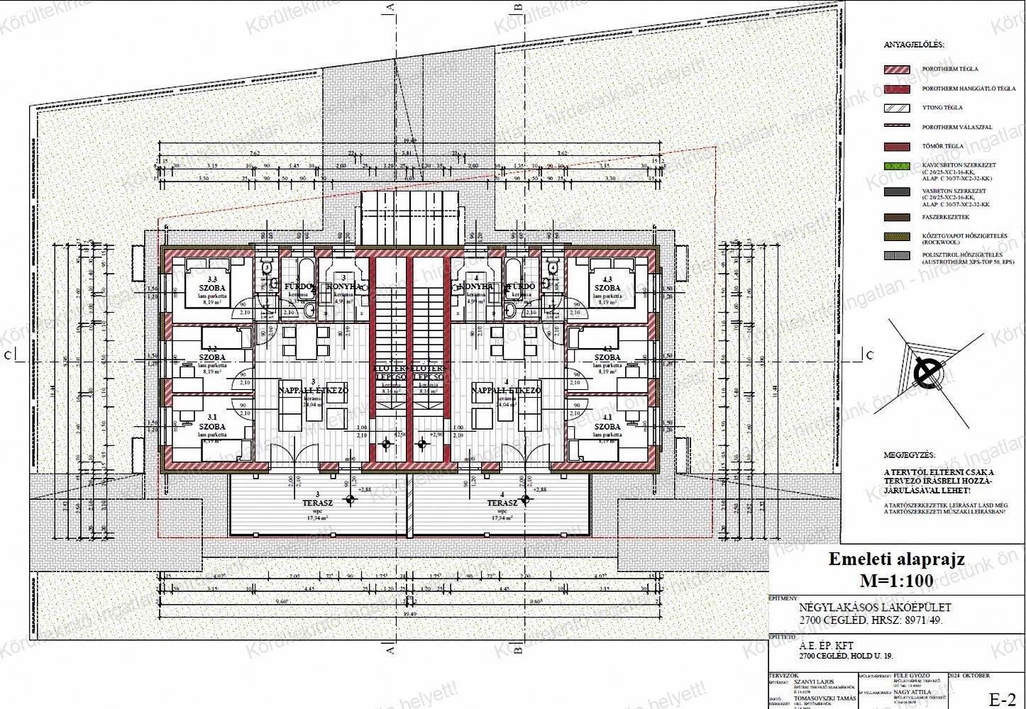 Cegléden, új utcában, új lakóparkban épülő, 4 lakásos társasház 1. emeletén 70 m²-es, 4 szobás, erkélyes (13 nm), kb. 100 nm kizárólagos használatú kerttel és a társasház udvarán belül egy darab, burkolt kocsibeállóval rendelkező tégla lakás eladó.
