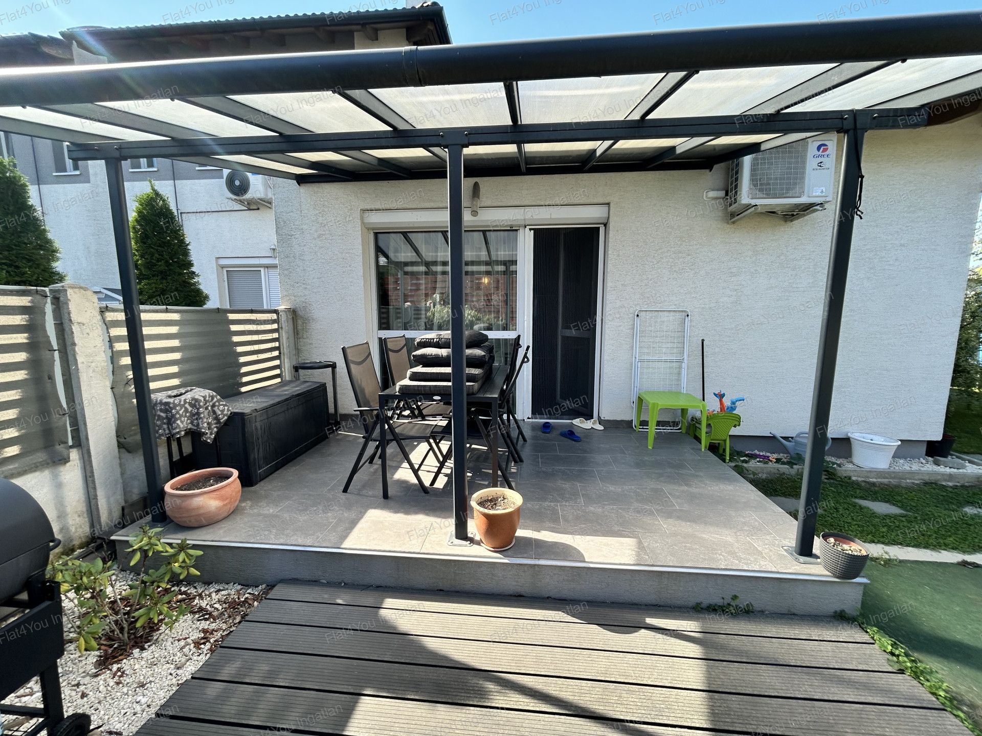 Eladó újszerű, SORHÁZ JELLEGŰ 94 m2-es LAKÁS TERASSZAL+ KIZÁRÓLAGOS HASZNÁLATÚ 350 M2-ES KERTTEL Göd Oázis lakóparkban