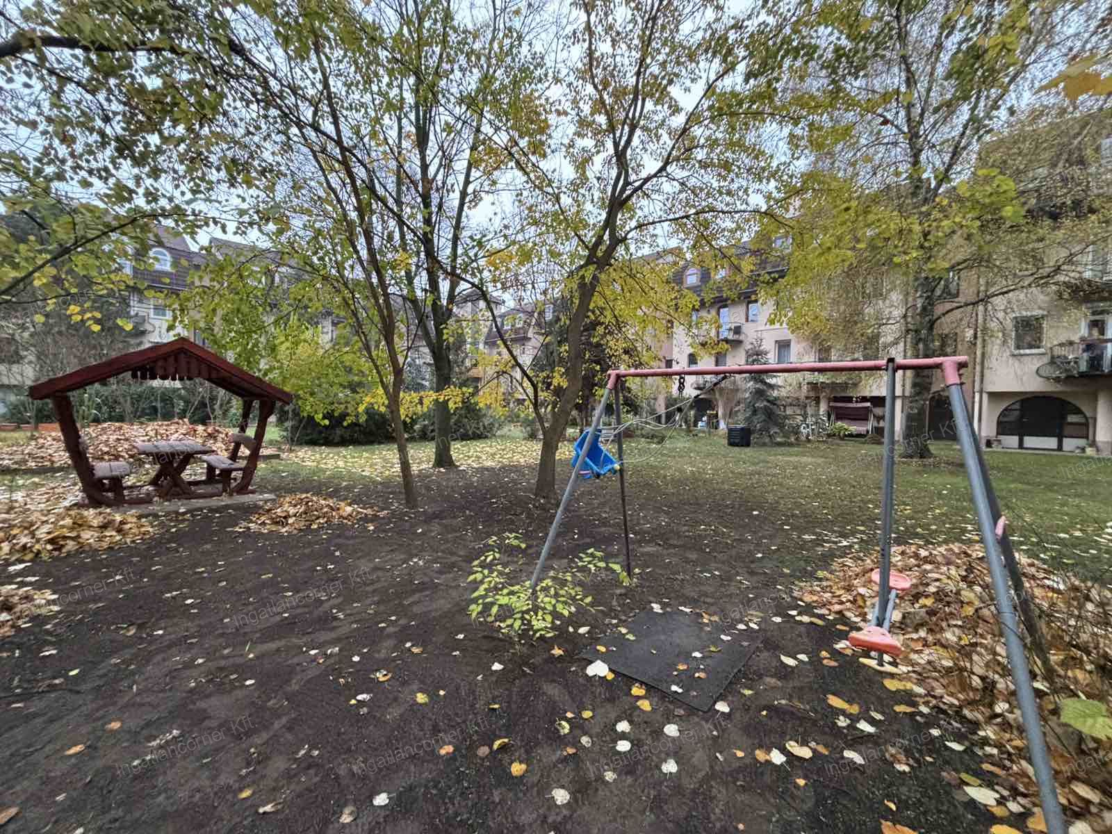Az ablakok zöldövezetre és a belső kertre tekintenek, jó levegő és csend jellemző a környékre.