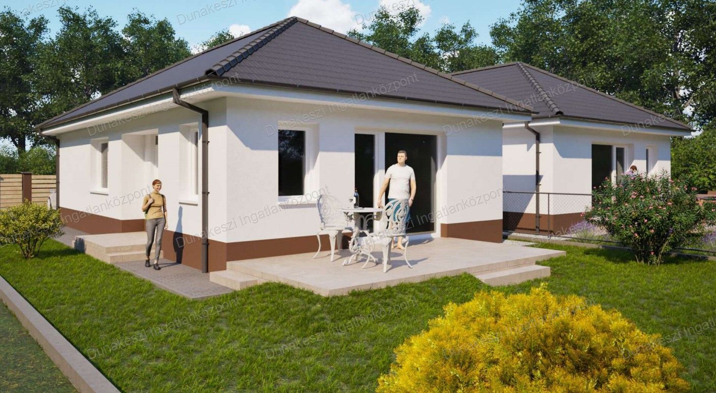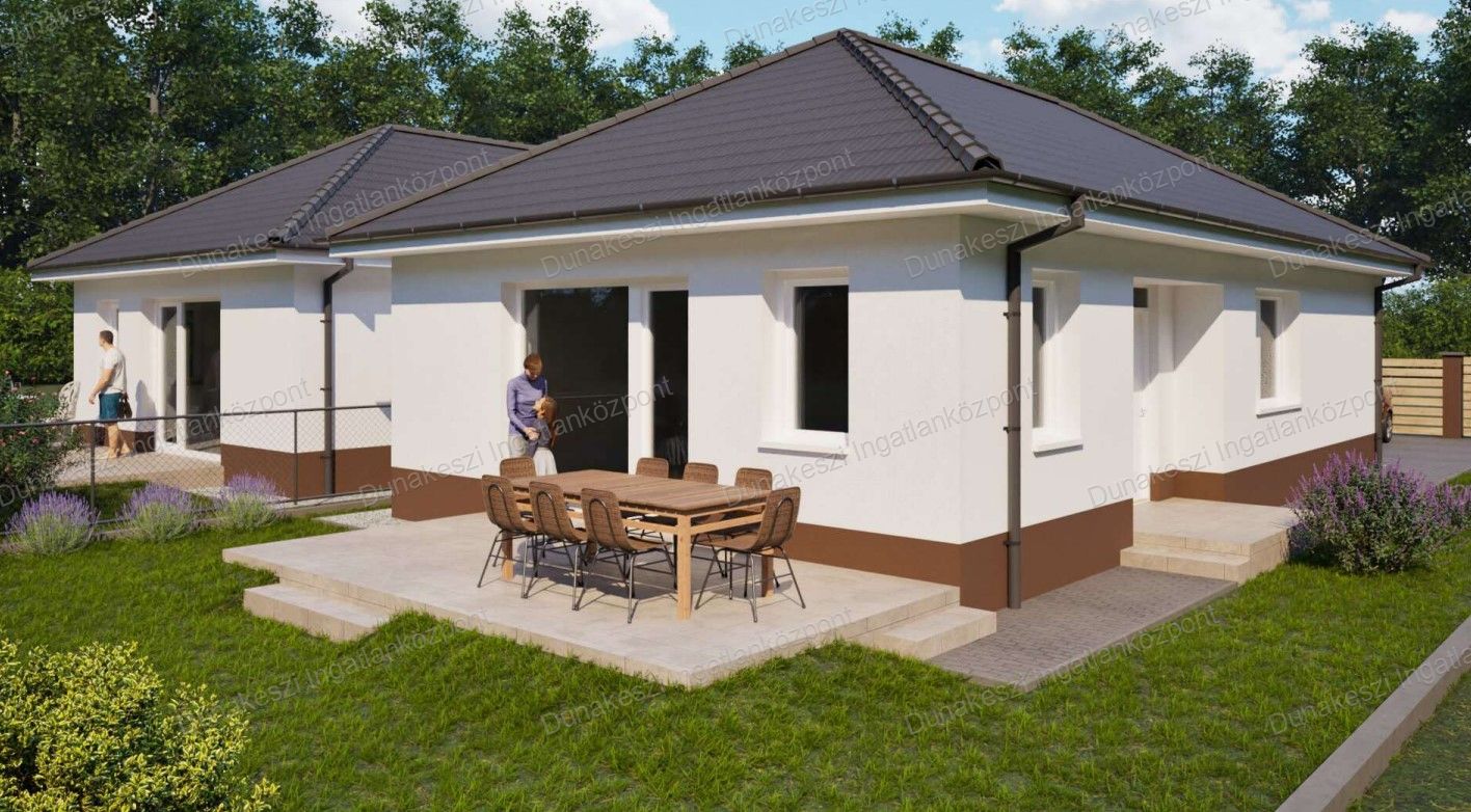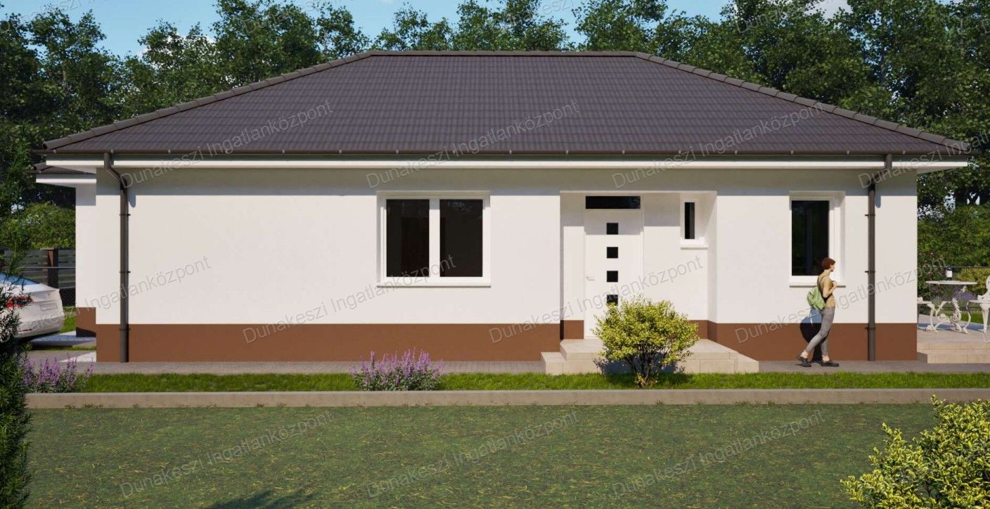 A FÖLDSZINTES ikerház több méretben, amerikai konyhás nappali+3 vagy 4 hálószoba, fürdőszoba, háztartási helyiség, kamra, előszoba, külön mellékhelyiséggel épül meg.