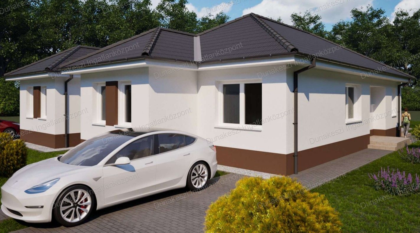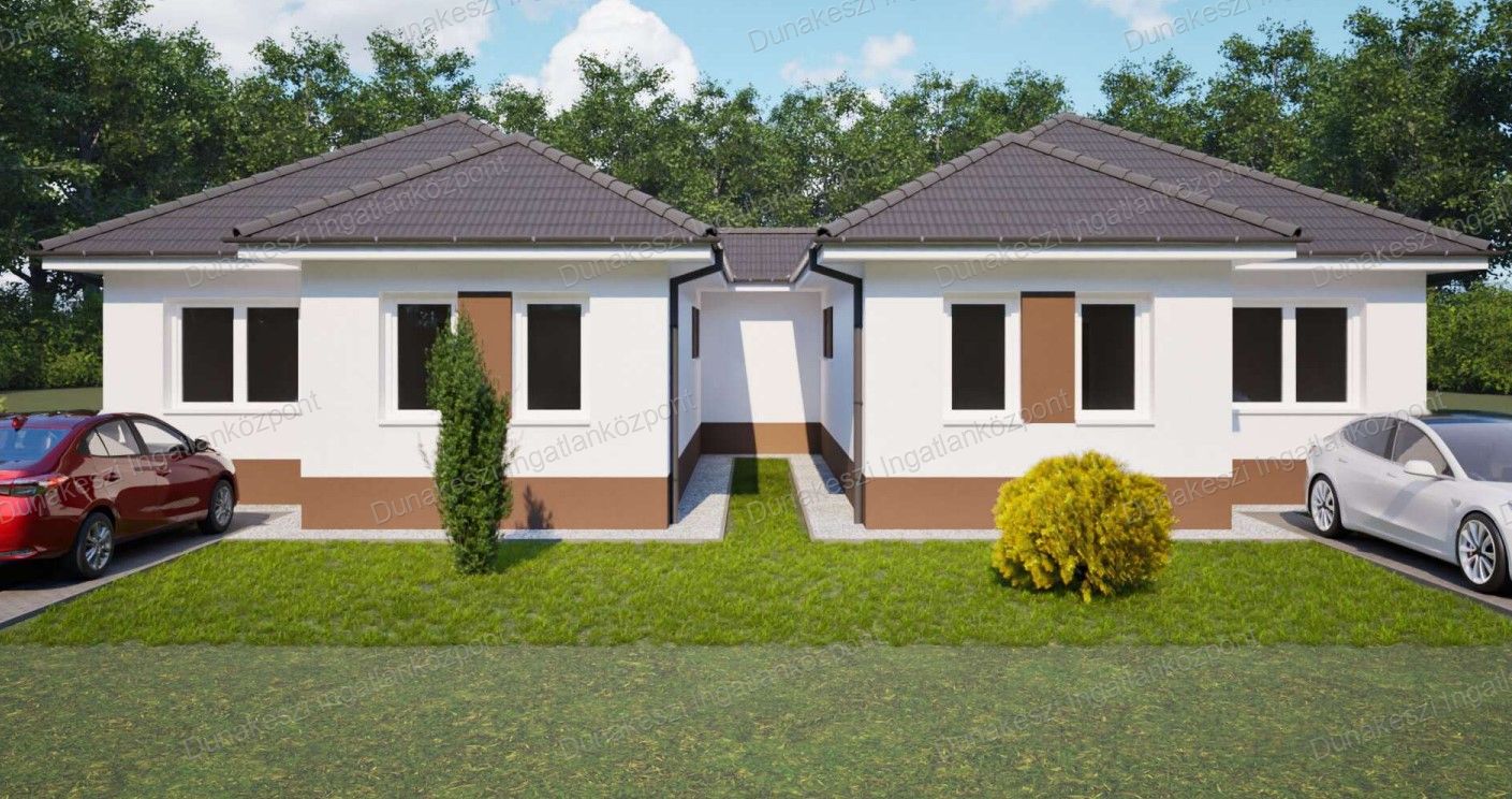 A FÖLDSZINTES ikerház több méretben, amerikai konyhás nappali+3 vagy 4 hálószoba, fürdőszoba, háztartási helyiség, kamra, előszoba, külön mellékhelyiséggel épül meg.