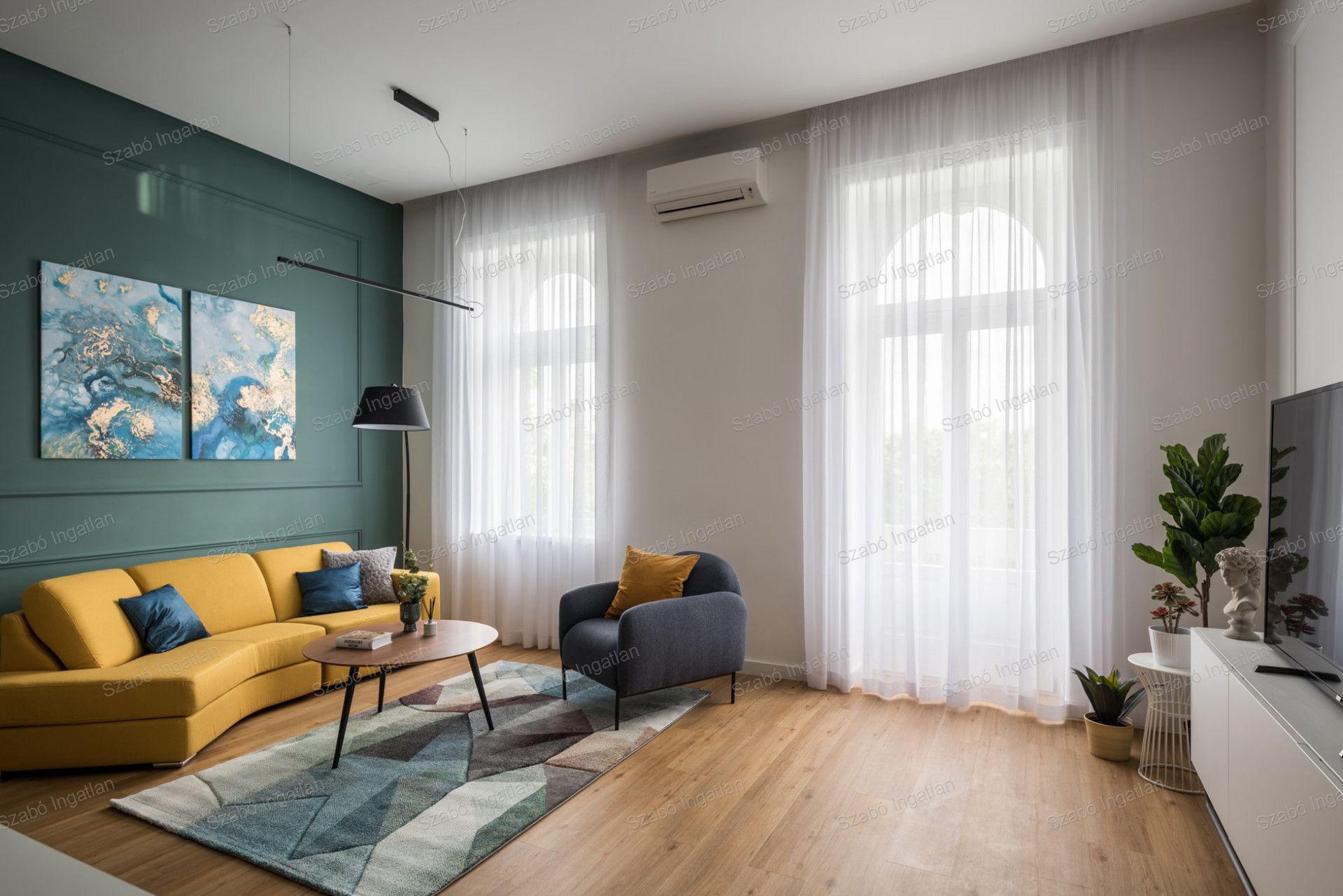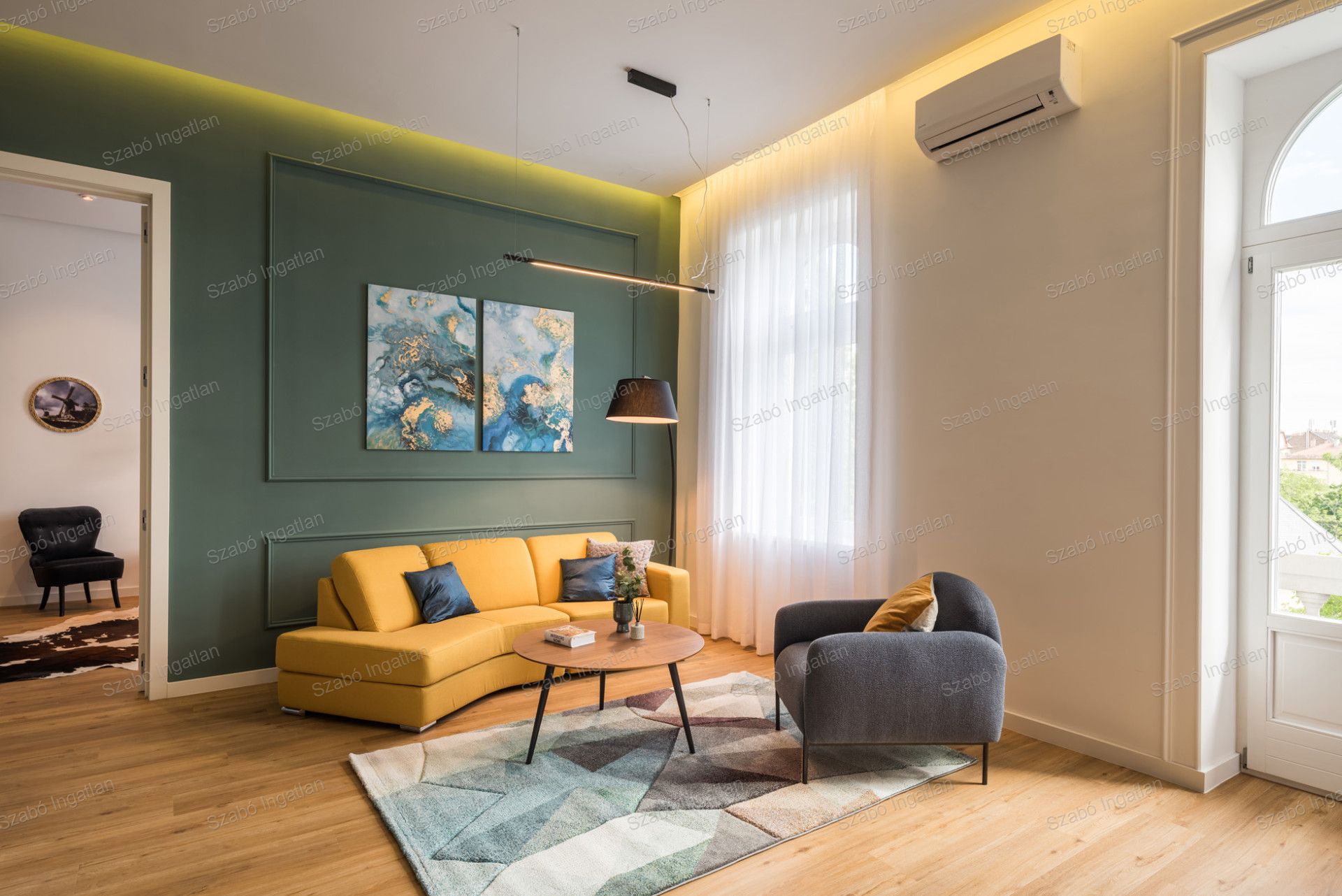 HOSSZÚTÁVRA KIADÓ a VI. kerületben, a Bajza utcában, nappali plusz 2 szobás, 100 nm-es, belsőépítész által impozánsan felújított, padlófűtéses, erkélyes, polgári luxuslakás, egy szintén felújított liftes társasházban.