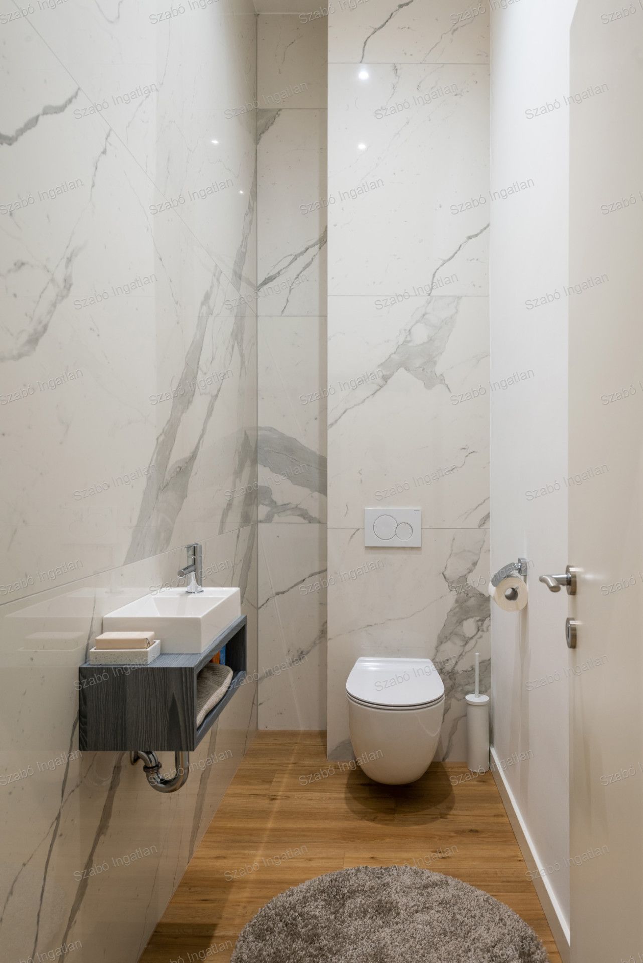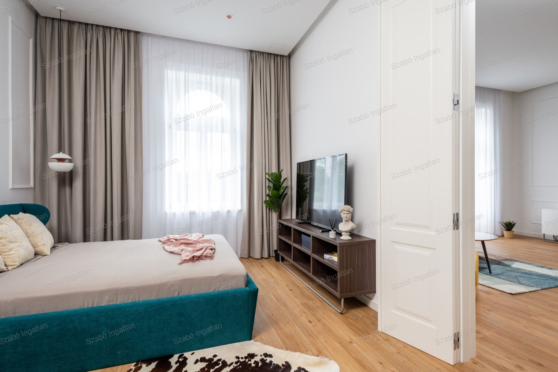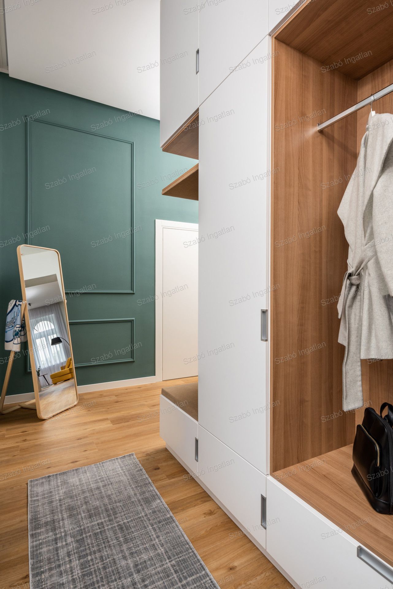 A lakásba belépve a tágas előtérbe érünk. Tovább haladva a közlekedőről nyílik a fürdőszoba, ami káddal és zuhanyzóval is ellátott. Valamint egy külön nyíló mellékhelyiség is van. A fürdőszobával szemben található a vendég szoba és mellette pedig a mosókonyha. tovább haladva az erkélyes, amerikai konyhás nappali, ahonnan nyílik a hálószoba, ami egy hatalmas gardrób szekrénnyel felszerelt.