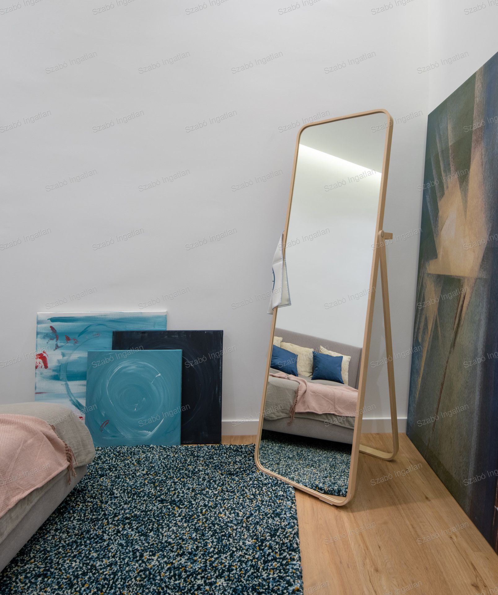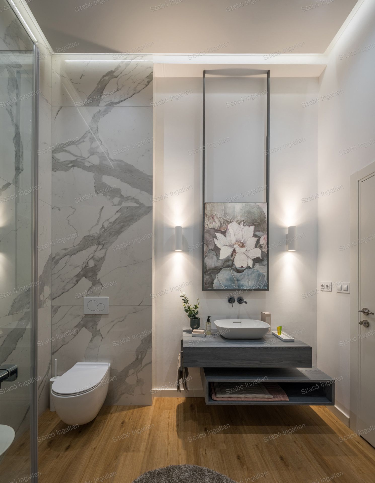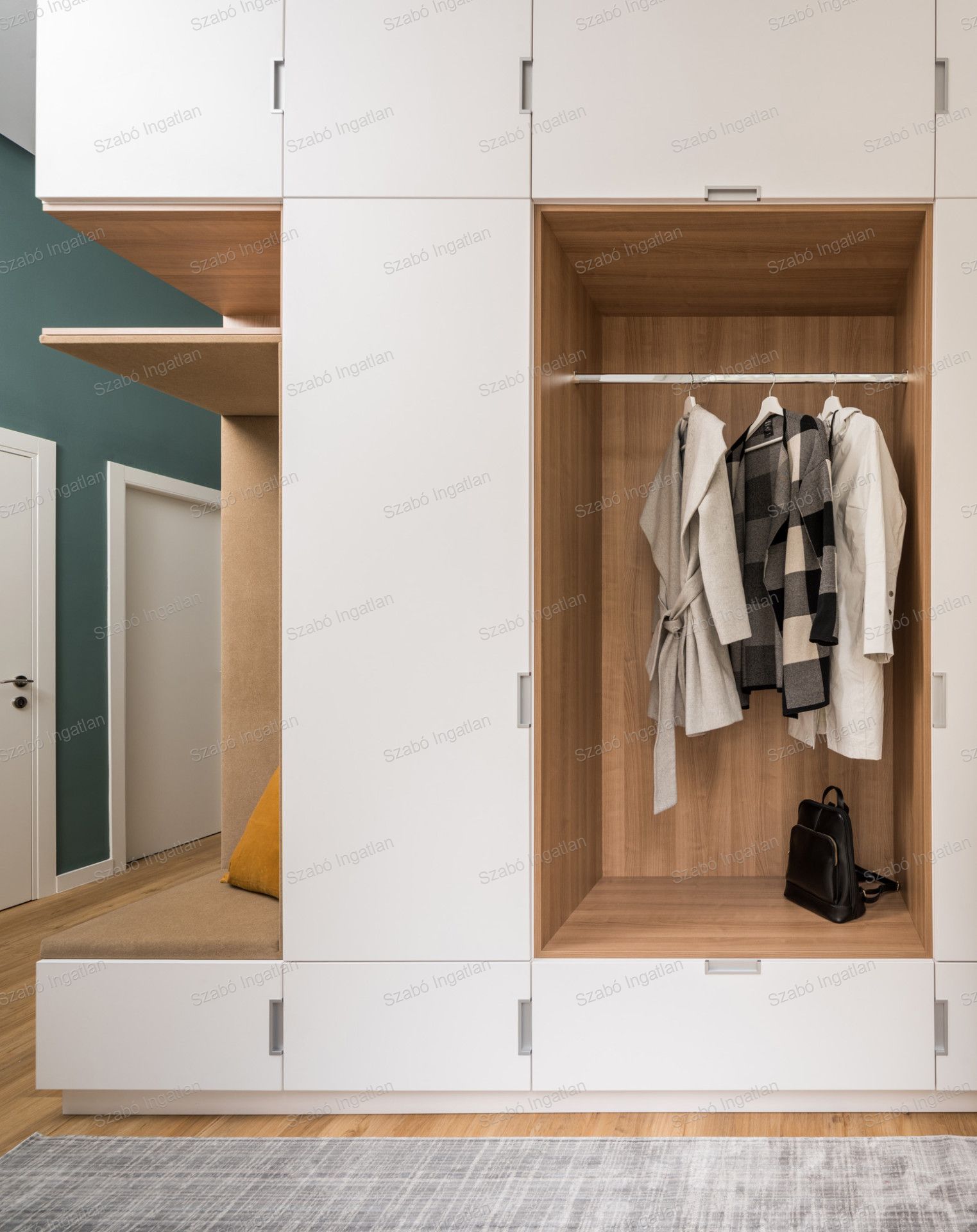 A lakásba belépve a tágas előtérbe érünk. Tovább haladva a közlekedőről nyílik a fürdőszoba, ami káddal és zuhanyzóval is ellátott. Valamint egy külön nyíló mellékhelyiség is van. A fürdőszobával szemben található a vendég szoba és mellette pedig a mosókonyha. tovább haladva az erkélyes, amerikai konyhás nappali, ahonnan nyílik a hálószoba, ami egy hatalmas gardrób szekrénnyel felszerelt.