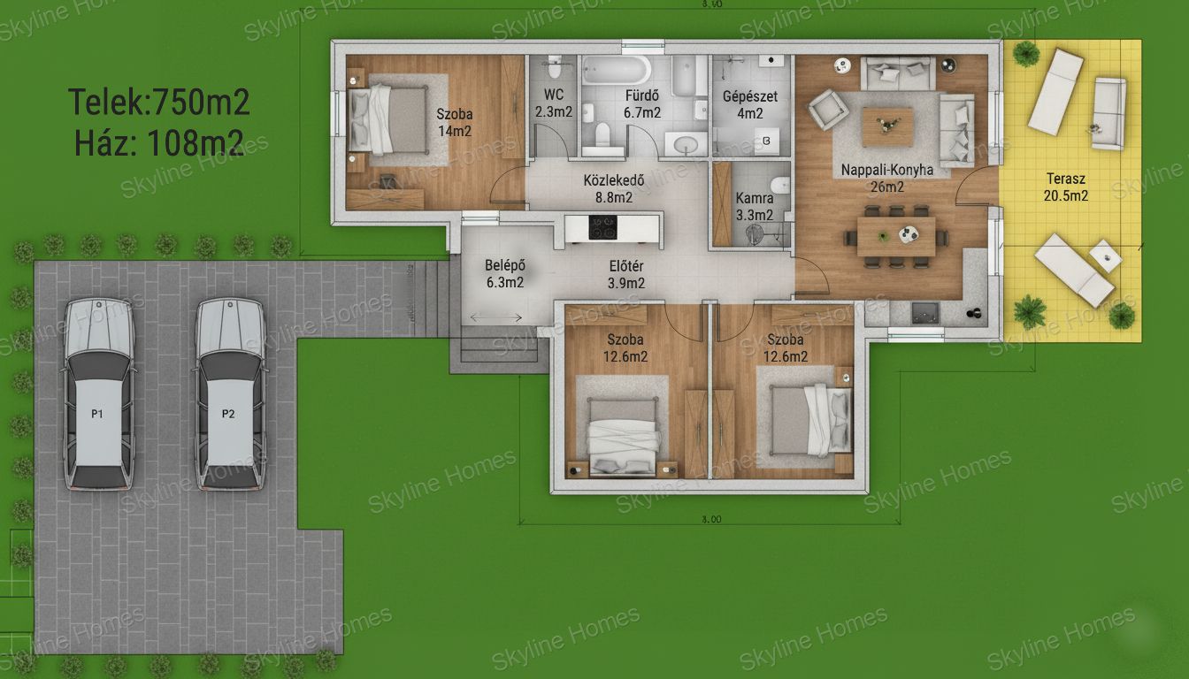Nyitott terasz: 20,54 m² – ideális reggeli kávézáshoz vagy baráti beszélgetésekhez