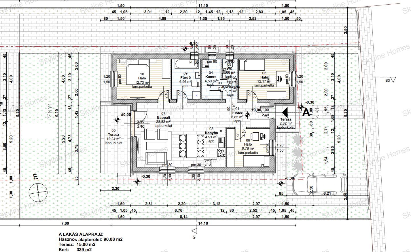 Csendes, központ közeli utcában eladó egy 90 m²-es, energiatakarékos, H-tarifás, új építésű családi ház, 339 m²-es telken. Az ingatlan amerikai konyhás nappalival, 3 hálószobával, 1 fürdőszobával, 2 WC-vel,kényelmes méretű terasszal és saját kerttel rendelkezik. Zárt udvari parkolás biztosított.