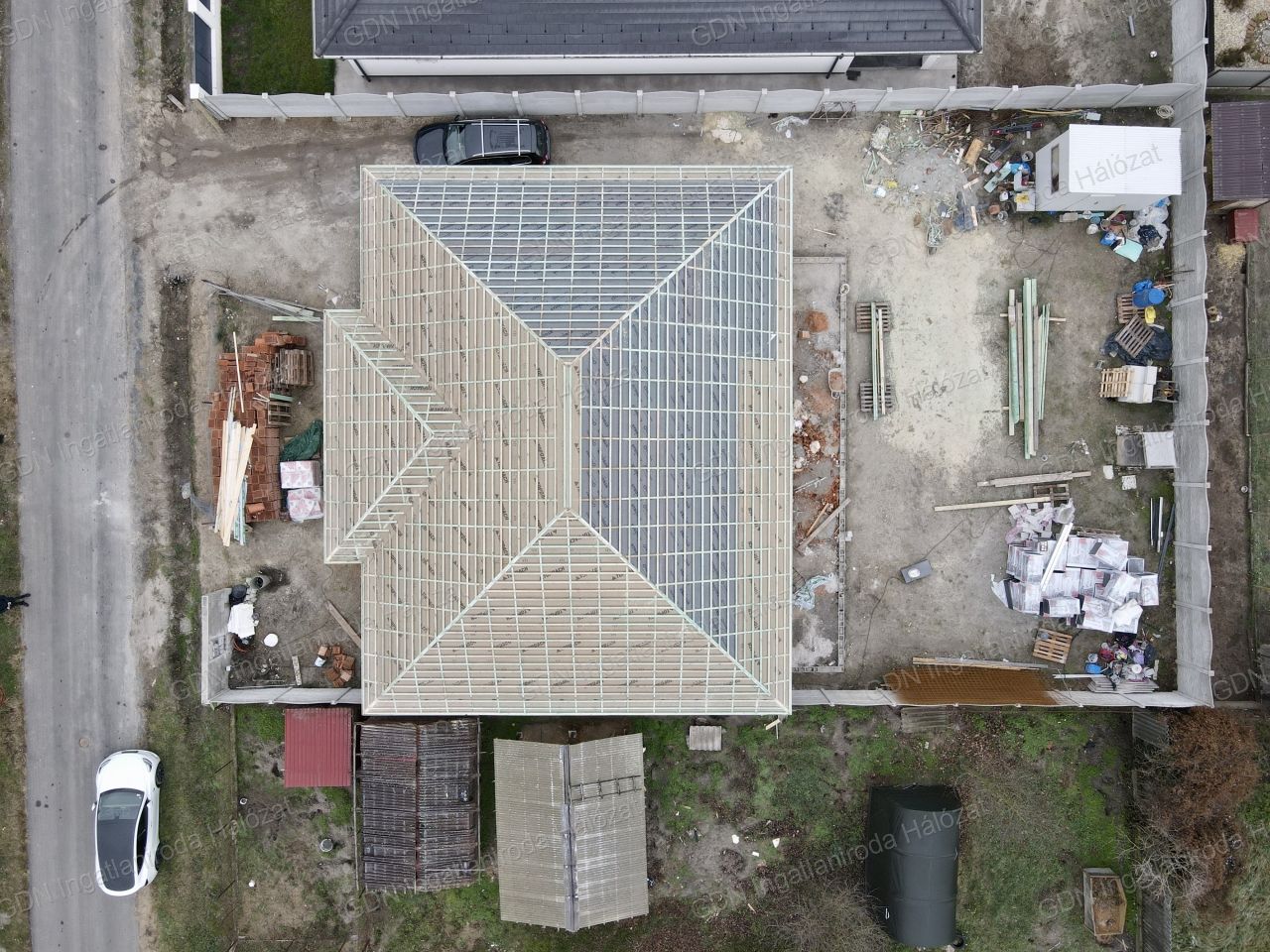 Az épület Porotherm P30N+F téglából, betonkoszorúval és fa födémes tetőszerkezettel készül. A lábazat 10 cm vastag lépésálló polisztirol, a homlokzat 10 cm-es Austrotherm grafitos hőszigetelést kap, a vízszintes födém pedig 25 cm ásványgyapot szigeteléssel kerül kialakításra.