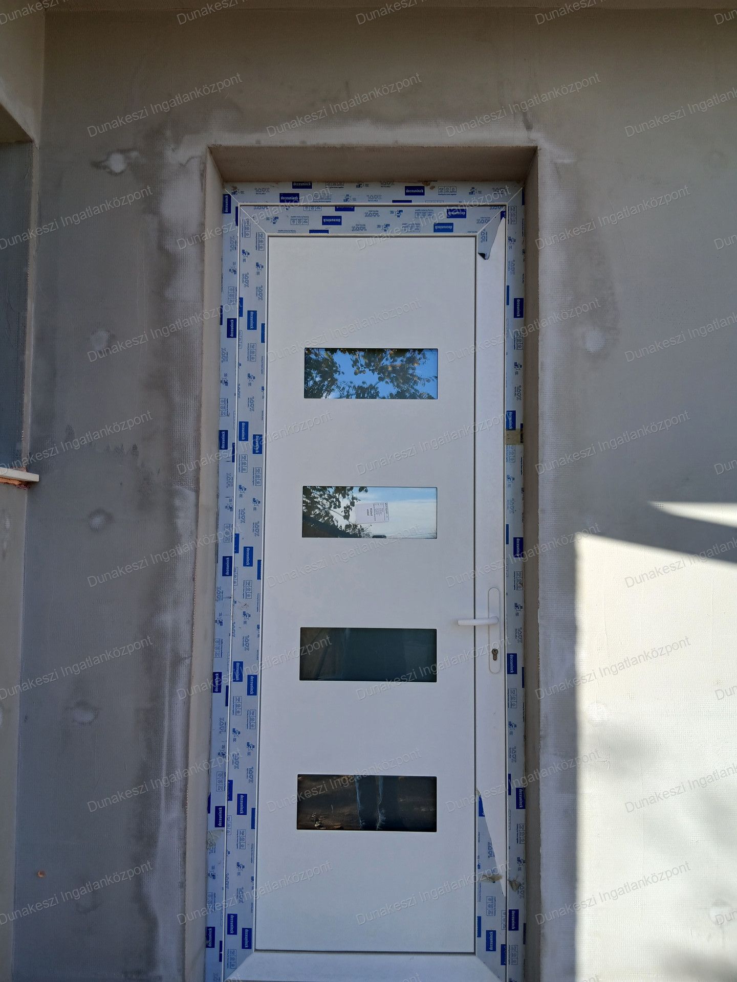 -A nyílászárók háromrétegű hőszigetelő üvegezésüek, 6 kamrás, fehér műanyag szerkezetűek.