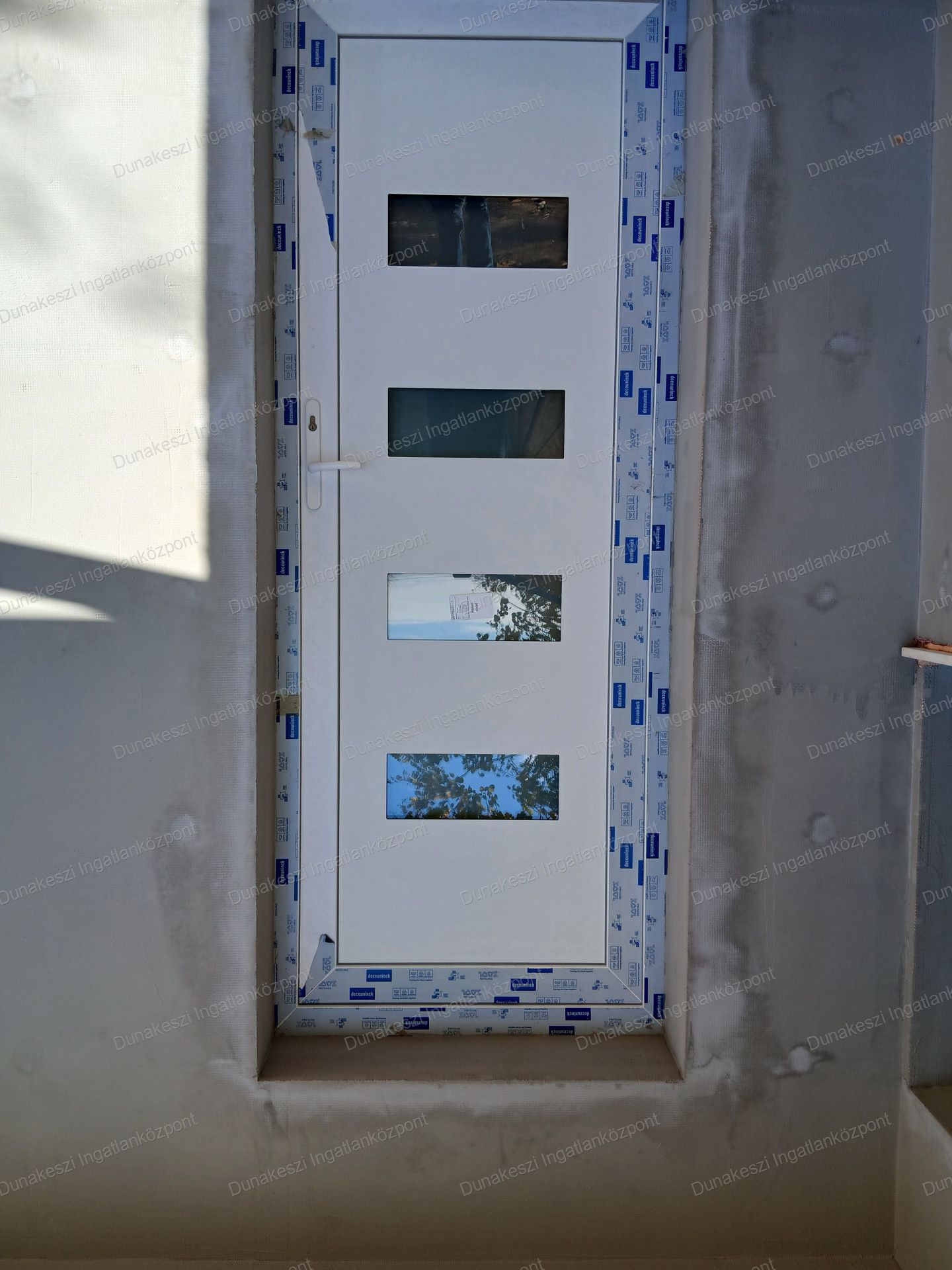 -A nyílászárók háromrétegű hőszigetelő üvegezésüek, 6 kamrás, fehér műanyag szerkezetűek.