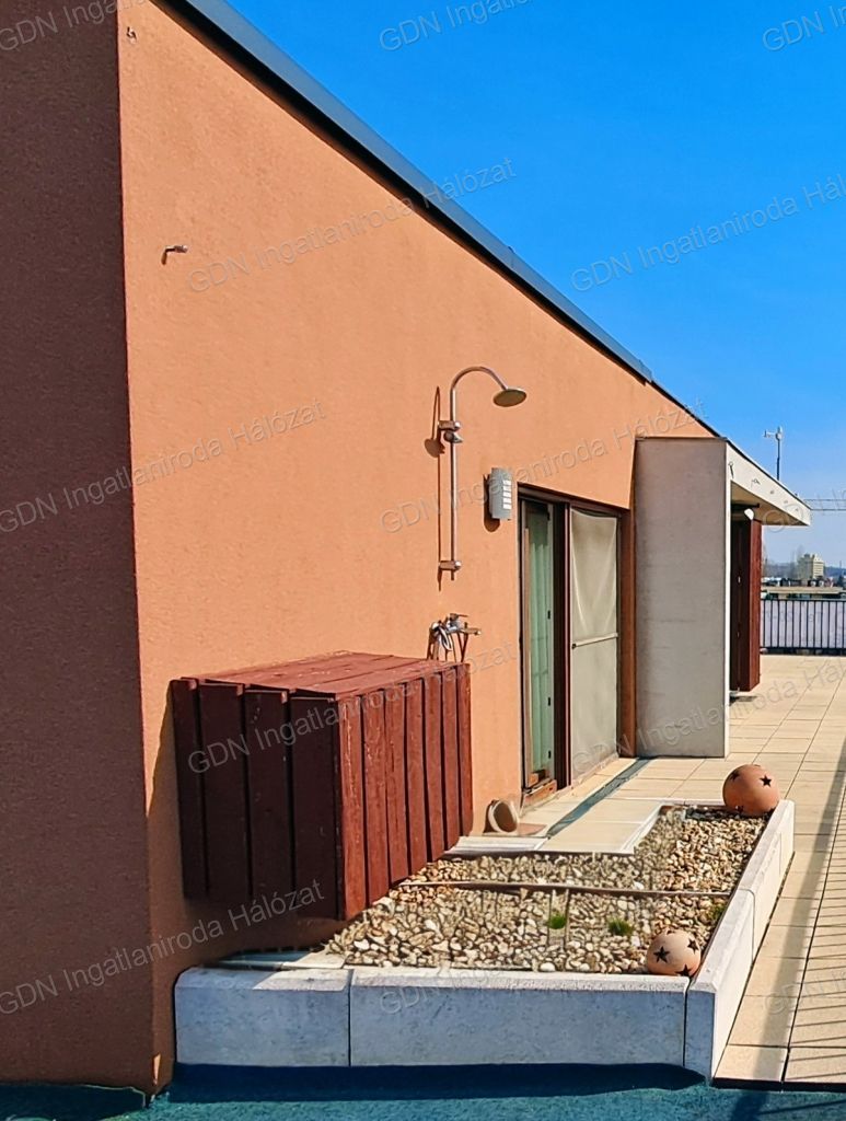 Csak nálunk! Exkluzív PENTHOUSE a 6. emeleten – teljes intimitás, körpanorámás terasz, prémium életérzés Zuglóban! Budapest XIV. kerületének egyik legkedveltebb lakóövezetében, a Cordia Thermal 1 lakópark legfelső szintjén eladó ez a páratlan adottságú, luxus érzetet sugárzó penthouse lakás, melyhez 103 m²-es, lenyűgöző körpanorámás terasz tartozik. A 6. emeleten mindössze két lakás található, így a lehető legmagasabb szintű intimitás, csend és nyugalom biztosított – távol a város zajától, de mégis mindenhez közel. Ez az a szint, ahol valóban megélhető a penthouse-ok egyedi, privát világot kínáló életérzése. Főbb adatok: Építés éve: 2011 Lakótér: 75 m² Terasz: 103 m² körpanorámával Közös költség: 32.000 Ft/hó benne van a fűtés és a hideg-meleg víz, szemétszállítás, takarítás, kertész,évente 4 ünnepi díszítés a társasházban, Energetika: C besorolás Fűtés: házközponti, egyedi mérés Állapot: szép állapotban, azonnal költözhető, tehermentes A lakás – letisztult egyszerű 2011-es design és modern kényelem. A tágas amerikai konyhás nappaliból két külön nyíló hálószoba és két kényelmes fürdőszoba érhető el. A magasfényű, modern konyhabútor és a beépített gépek az ár részét képezik, csakúgy, mint a lakásban található infraszauna. A lakás műszakilag kifogástalan: korszerű 3×25 A elektromos hálózat,riasztórendszer és 4 darab Midea hűtő-fűtő klíma gondoskodik a maximális kényelemről – télen és nyáron egyaránt. Csak minimális frissítést igényel (tisztasági festés, modern világítástechnika, esetleg fürdőszoba bútor), így rövid idő alatt mai design-ra emelhető. A PENTHOUSE esszenciája – 103 m² privát tetőterasz! A lakást körül öleli az óriási terasz és így 3 égtájról napozza be az ingatlant ami igazi különlegesség. Terasz beépítéssel akár télikert,kültéri zárható edzőterem vagy saját wellness részleg is kialakítható jakuzzival, finn-szaunával. Jelenleg hideg–meleg vizes zuhany áll rendelkezésre a teraszon. A zöldtető elemek és az aktív tetőszerkezet lehetővé teszik még nagyobb növények, akár saját tetőkert telepítését is. A képeken néhány éves tetőkert látható jelenleg várja új tervezőjét a csodás kert. A hatalmas üveg tolóajtók jó időben szinte egybeolvasztják a nappali tereit a terasszal, így a lakás térérzete messze túlmutat a megszokott alapterületeken. Műszaki minőségnek elég a Cordia méltán híres vállalat hírneve,de néhány alap információ a teljesség igénye nélkül. -Beton + 30-as porotherm falazat -15 cm dryvit szigetelés -Prémium minőségű panoráma nyílászárók.Kiváló hő- és hangszigetelés -Elektromos redőnyök -Zöldtető automata öntöző rendszer -Biztonságtechnika és riasztó -Kamerás zárt lépcsőház és parkoló A lakóközösség kifejezetten rendezett, kulturált és igényes, ami tovább növeli az ingatlan értékét és élhetőségét. Elhelyezkedés – zöld környezet, aktív életmód, minden karnyújtásra A lakópark közvetlenül a Rákos-patak partján, a Paskál Fürdővel szemben helyezkedik el. A környék nyugodt, biztonságos és folyamatosan fejlődik. A közelben: -futópálya, kerékpárút, sportpálya,élelmiszerbolt -újonnan megnyitott bevásárlóközpont éttermekkel, üzletekkel, szolgáltatásokkal Tömegközlekedés: 1 perc sétára. Parkolás és tárolók -Díjmentes parkolási övezet -Opcionálisan vásárolható: 2 teremgarázs-beálló valamint 2 db tároló Jöjjön el nézze meg és tegyen ajánlatot I.V.